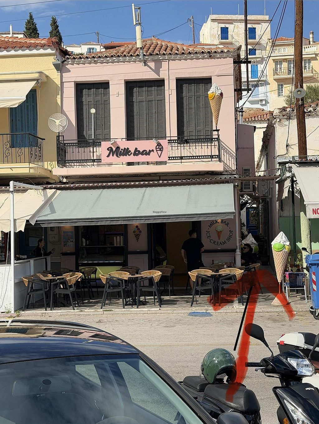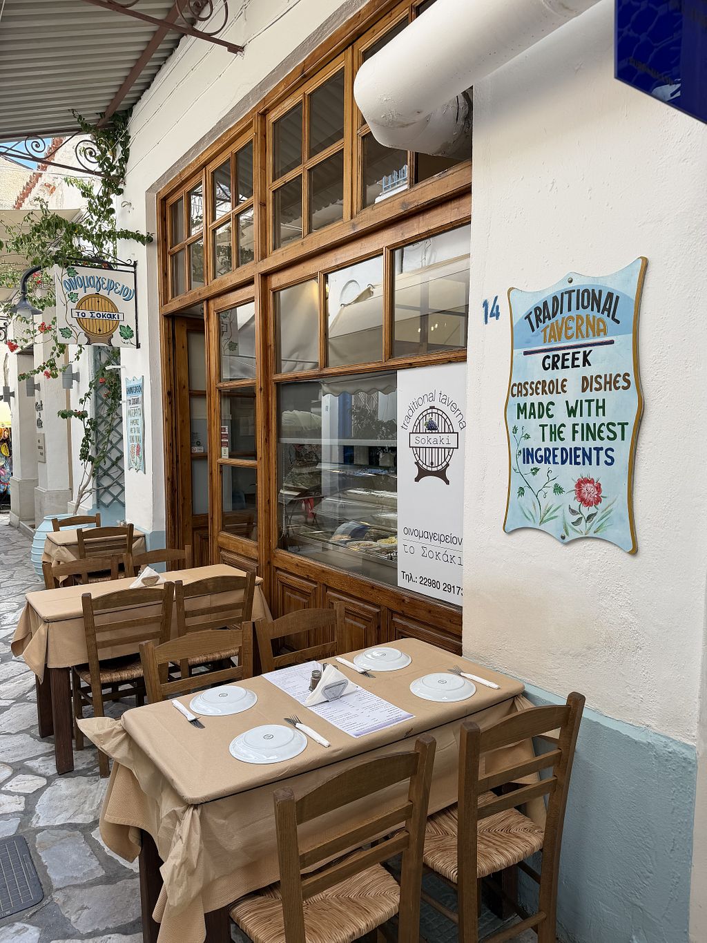 Serves meat, vegan options available. Greek tavern offering vegan-friendly local dishes including bean stew, fava bean puree, cooked okra, boiled vegetables, beetroot with aioli and bread. Open Mon-Sat 9:00am-5:00pm. Closed Sun.