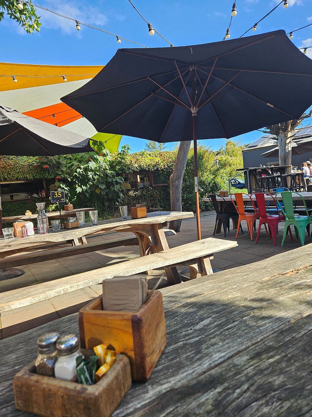 Pros: Vegan options labelled on menu , Great outdoor seating areas