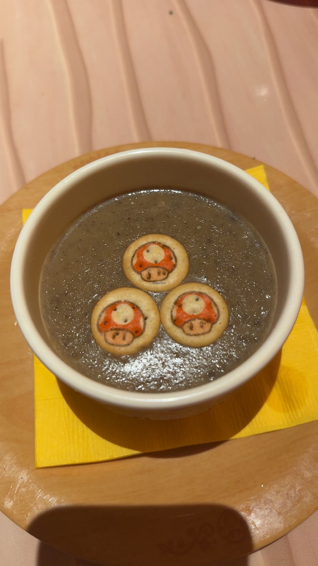 The soup was so good and the theming is adorable! I only wish they had more options than just the soup. It pairs well with the green shell calzone from Yoshi’s Snack Island, though!
