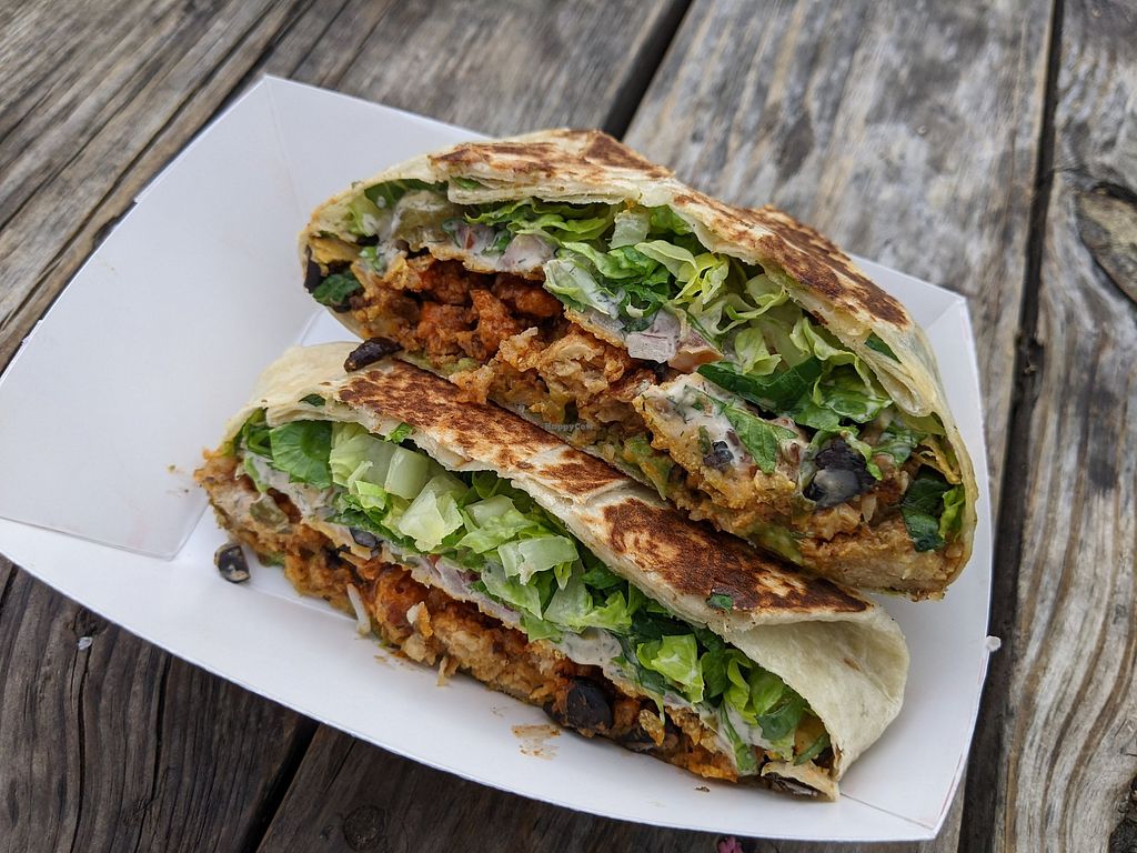 Pros: Buffalo crunch wrap was super tasty, Knowledgeable staff, all vegan, Right next to other trucks with vegan options