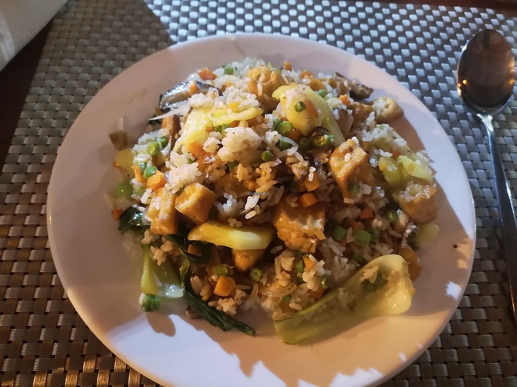 Serves meat, vegan options available. This small town restaurant offers a selection of traditional Khmer food that's vegetable based, including a tofu amok (khmer curry). There's also pasta--try the spaghetti (omit cheese). Removed February 2022 - under new ownership and no longer offering vegan options.