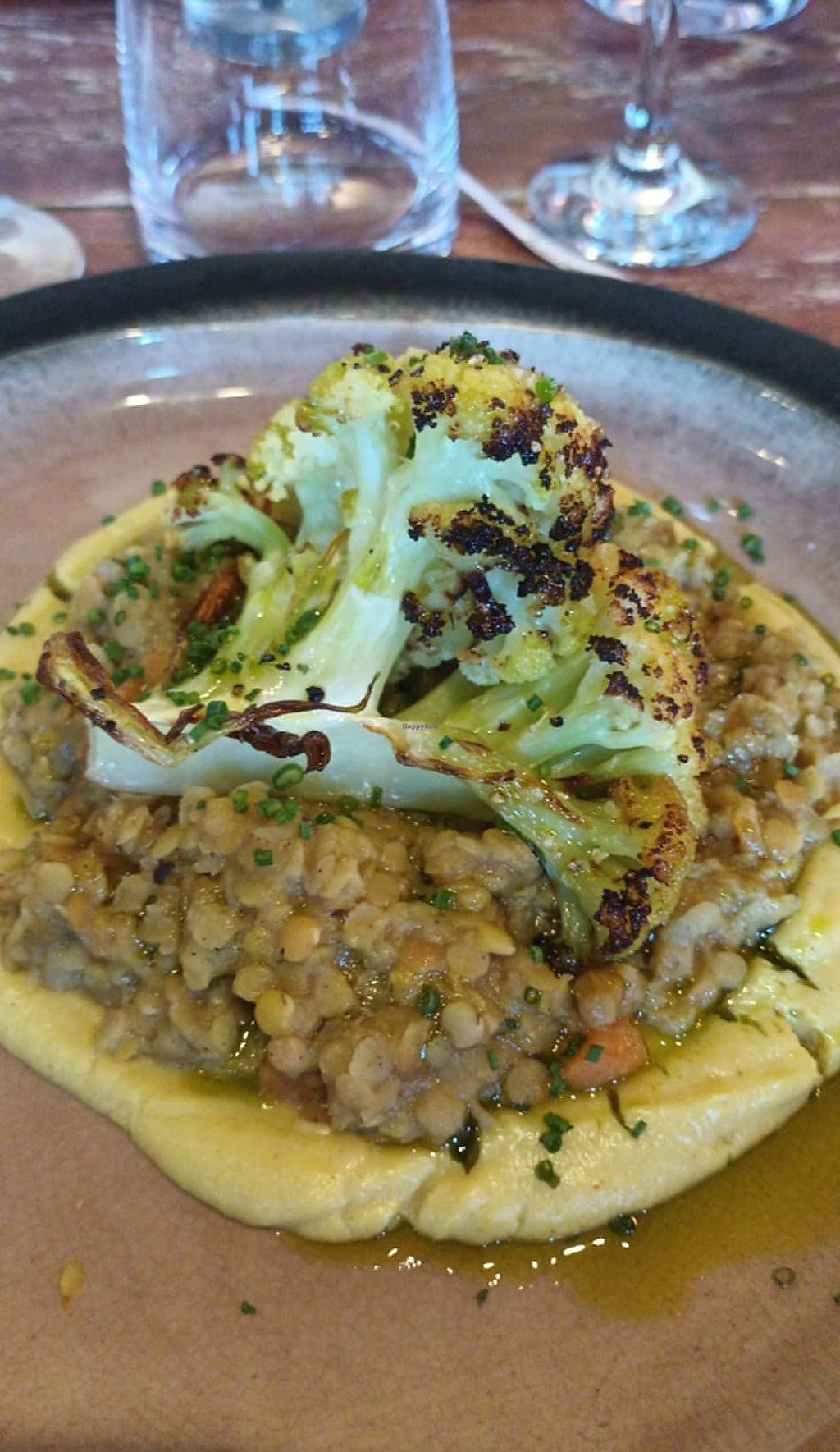 I ordered from a reduced menu due to attending as part of a larger group booking, but I was a bit disappointed with the food. The 'vegan' soup came with butter for the bread, and there was no vegan dessert option. The main was tasty but felt like half of the meal was missing, it was essentially a piece of cauliflower with a large spoonful of lentils and more pureed cauliflower. I am aware there are a few more options on the full menu but it still appears to be lacking.
