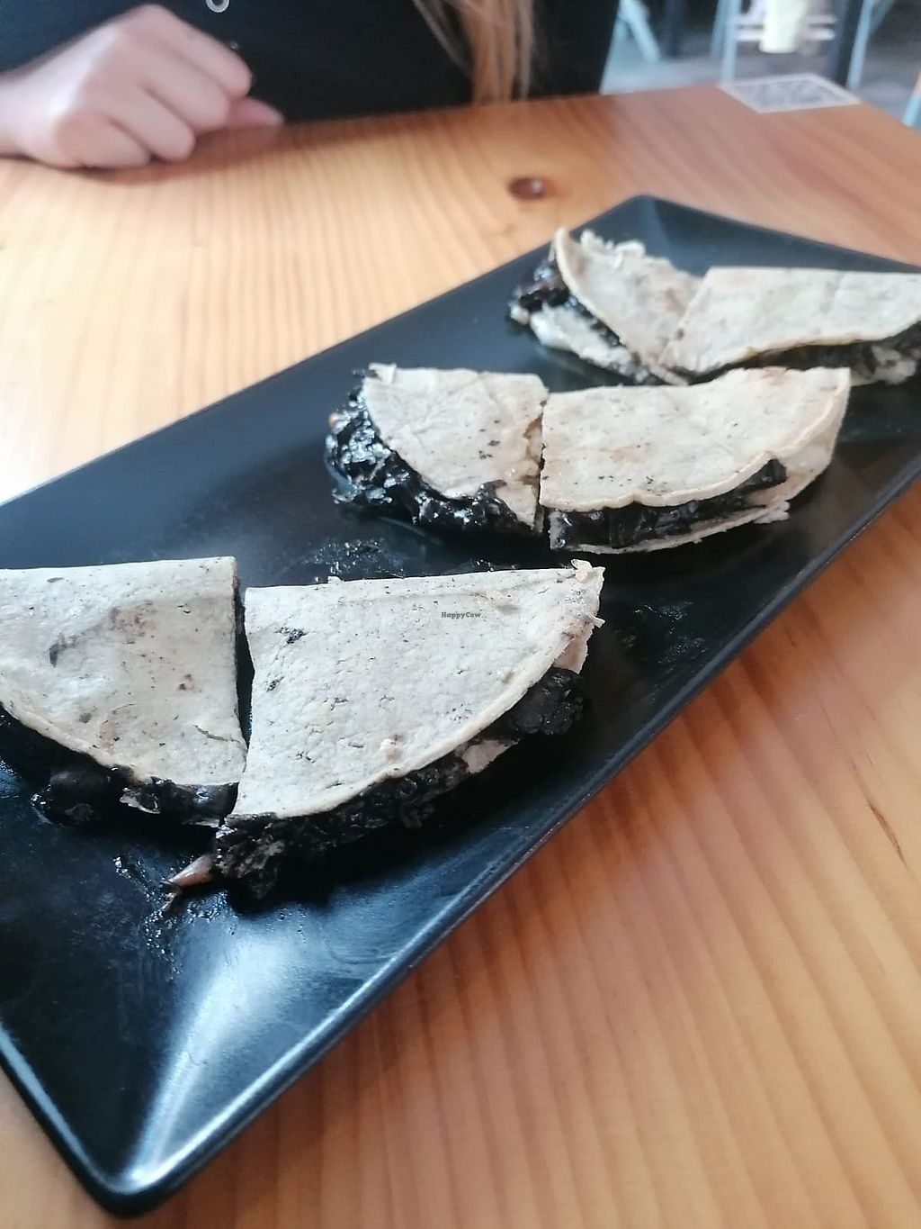 No te pierdas la quesadilla de huilacoche con queso vegano. Exquisita