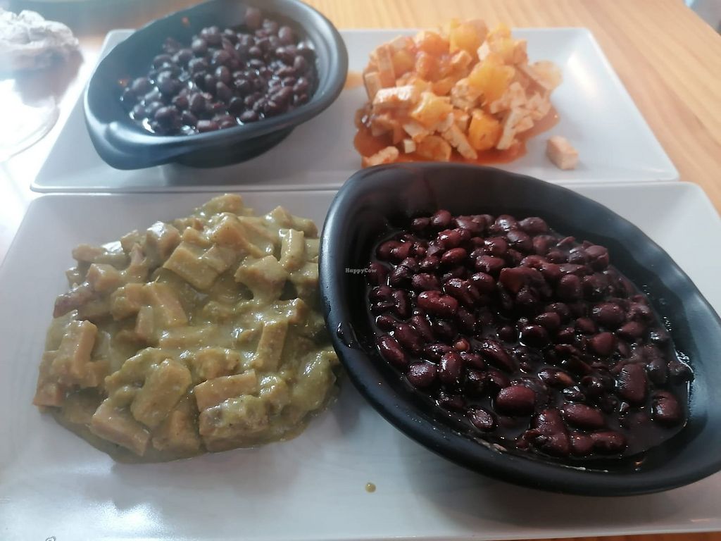 Sin embargo, los tacos traen poca cantidad de comida y ni siquiera cabe en las 4 mini tortillas que te dan por lo que hay que pedir más. El seitán con mole verde estaba bueno y el acompañamiento de frijoles completa el plato.