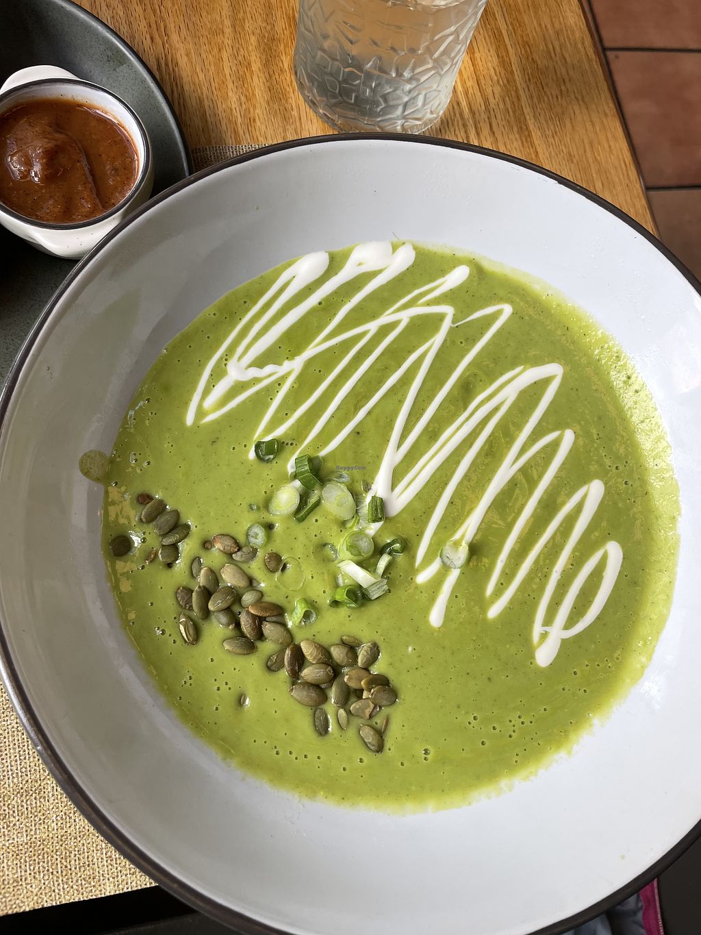 Every single item on their specials menu was vegan friendly - quite impressive for a place that’s not fully vegan. Their options were super creative - a creamy zucchini soup, a watermelon cucumber salad, and a “salmon” bowl. They had a salsa sampler that was wonderful and diverse as well.