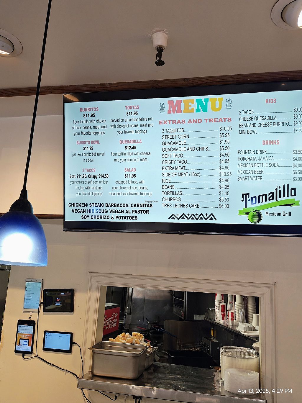 This place does everything we vegans can ask for from a restaurant that also serves meat. They have many, varied and creative options (including hibiscus, a yummy soyrizo/potato, and a tasty al pastor) to give us actual choices and they are sensitive to our needs. Too often we are made to feel like lesser than or an inconvenient obligation instead of what we should be made to feel like: valued customers. Tomatillo gets that and you can tell it right away.