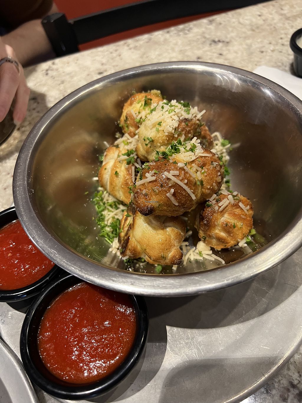 Lots of ways to customize pizza to be made vegan. There are vegan garlic knots and sandwiches as well. Everything was delicious!
