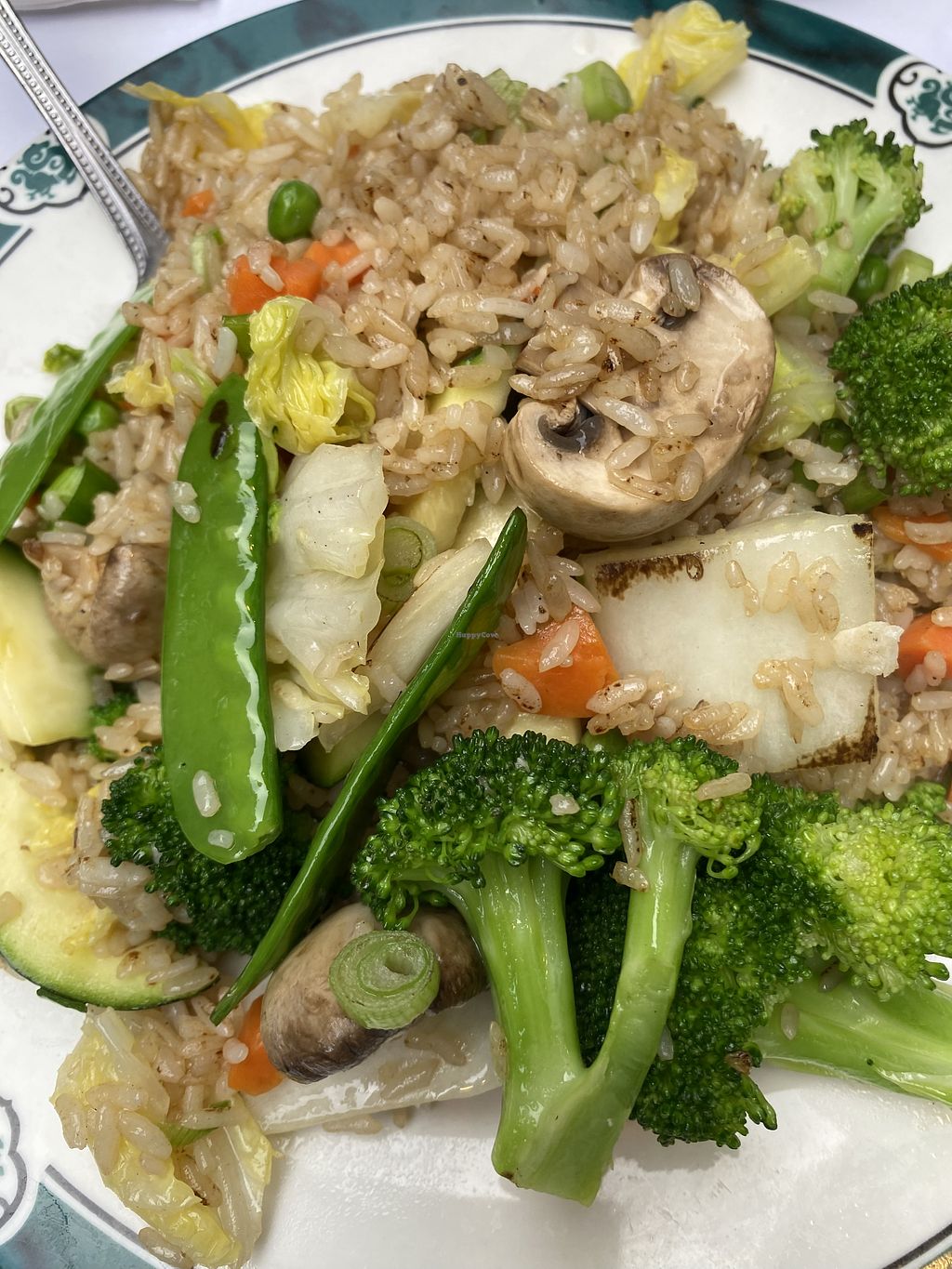 Serves meat, vegan options available. Menu states that that the kitchen cooks with chicken stock, but staff will make anything on the menu without it upon request. Example of choices for vegans include vegetable fried rice (without egg) and orange tofu. Open Tue-Sun 11:30am-2:30pm, 4:30pm-8:30pm.