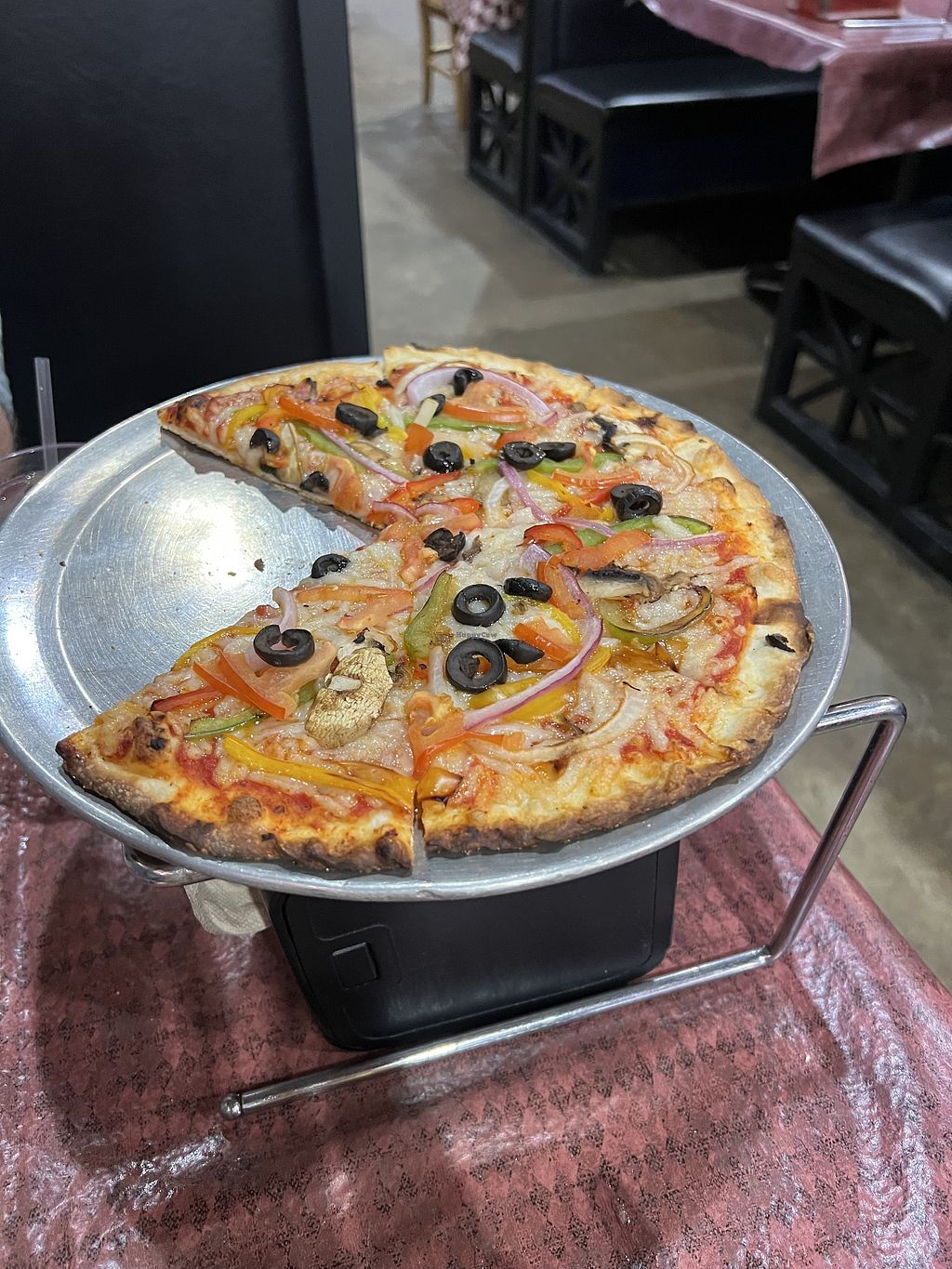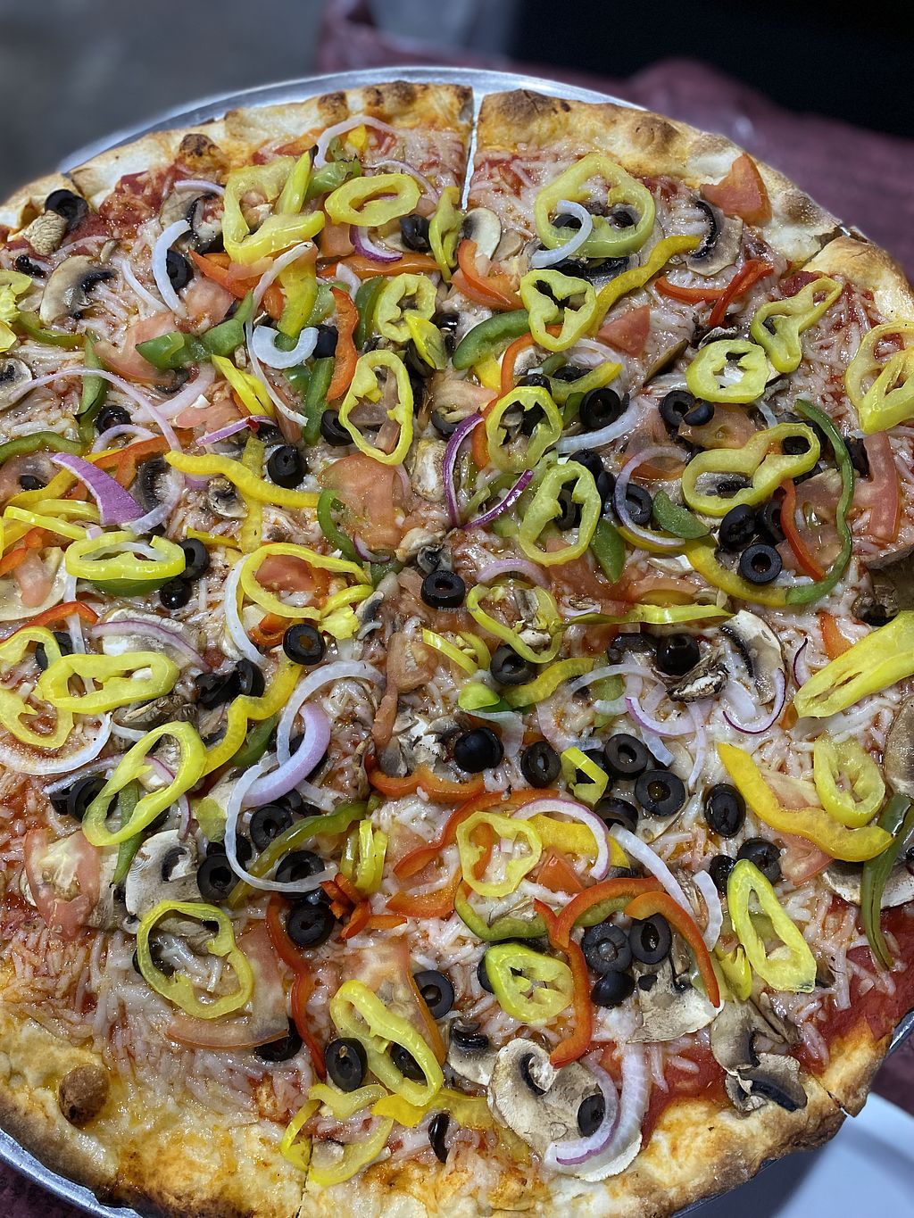 One of the veggie pizza options made with vegan cheese.