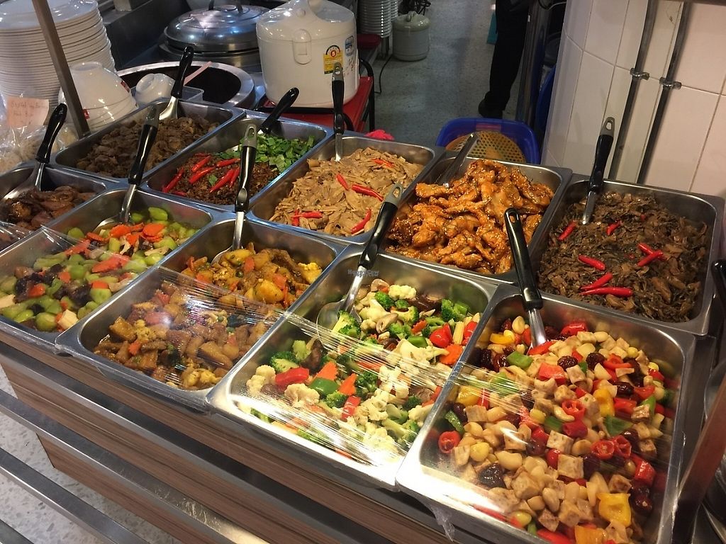 It's very cheap mock meats and Thai buffet style food. It was cold. You had 20 options rice or noodles. I had some cold noodles with a few some ok spring rolls, tofu with some green vegetable, some deep fried meats.
