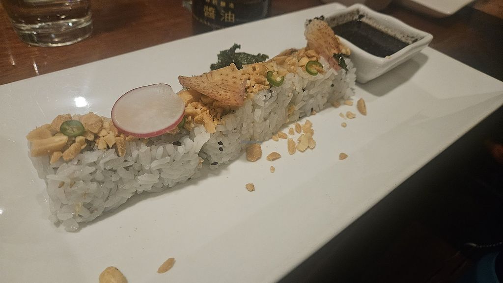 I went with friends and paid $16.50 for the one vegan sushi roll, the Thai Veggie Roll (without the mayo). It was good but a little complicated for my tastes (I'm a simple gal who doesn't need basil in her sushi). I got a $7 avocado roll (not on the menu) after because I was still hungry. It waa yummy. I would love a veggie roll with just veggies, or a tempura sweet potato roll.