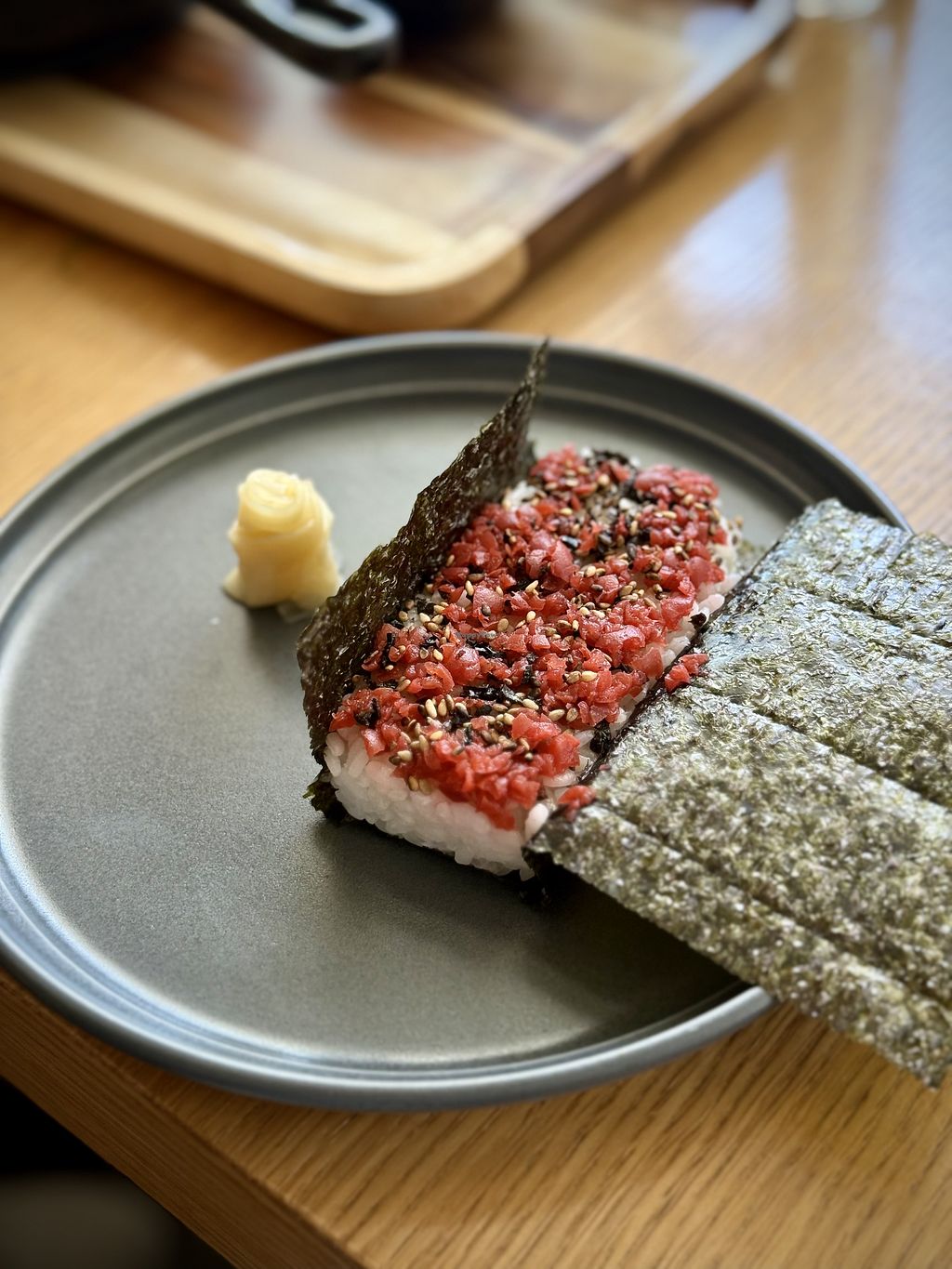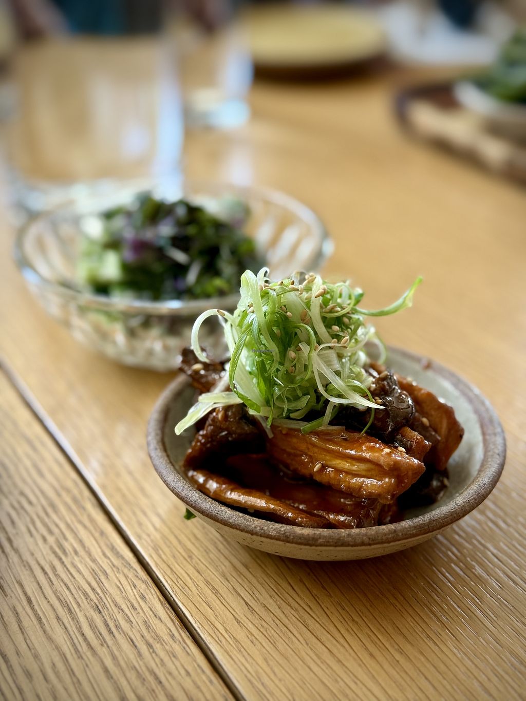 There are several vegan options offered at this restaurant. My favorite starters were the kimchi mushroom and the ume (rice ball with pickled plum). The miso ginger ramen was decent, but the broth was a bit too salty for my taste. I would try the ban ban kinoko mazemen noodles next time. The restaurant space was nice and the service was friendly.