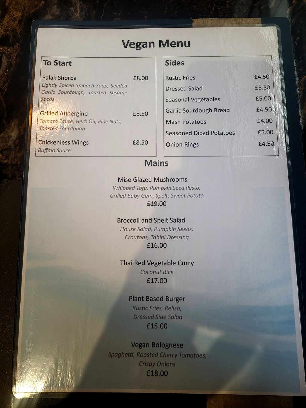Vegan Menu