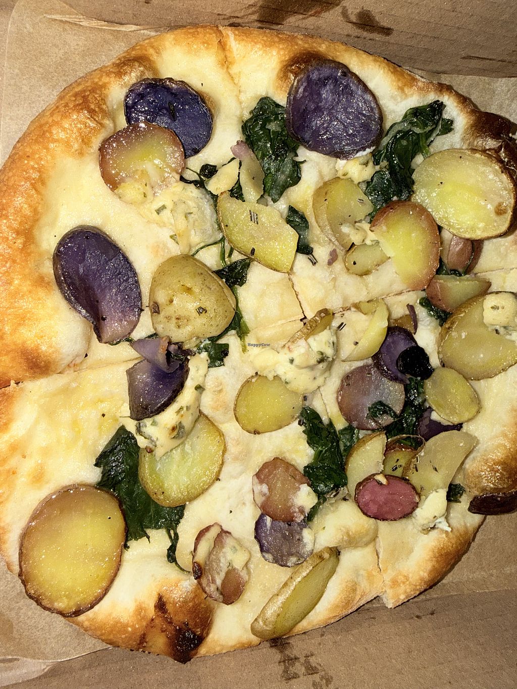 Personal specialty vegan pizza - potato, spinach, mushroom, macadamia …