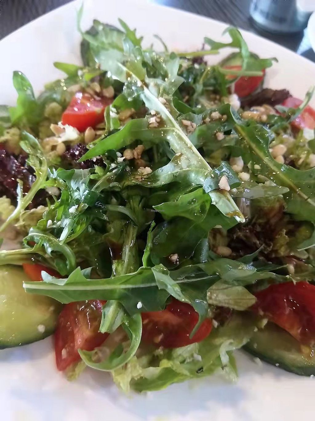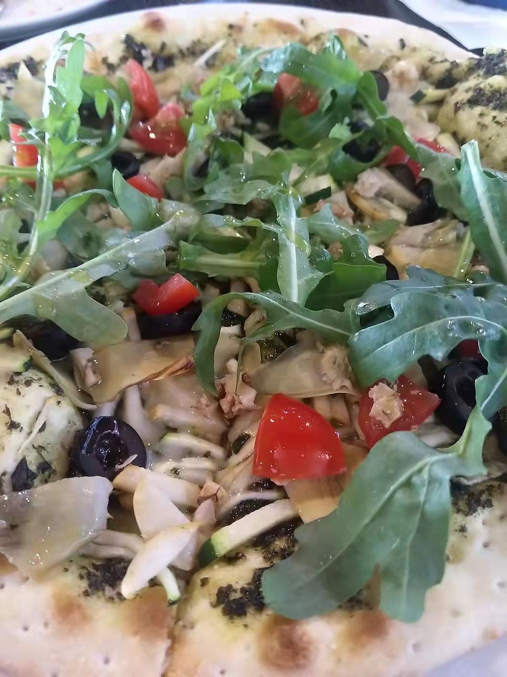 Vegan pizza and outdoor seating