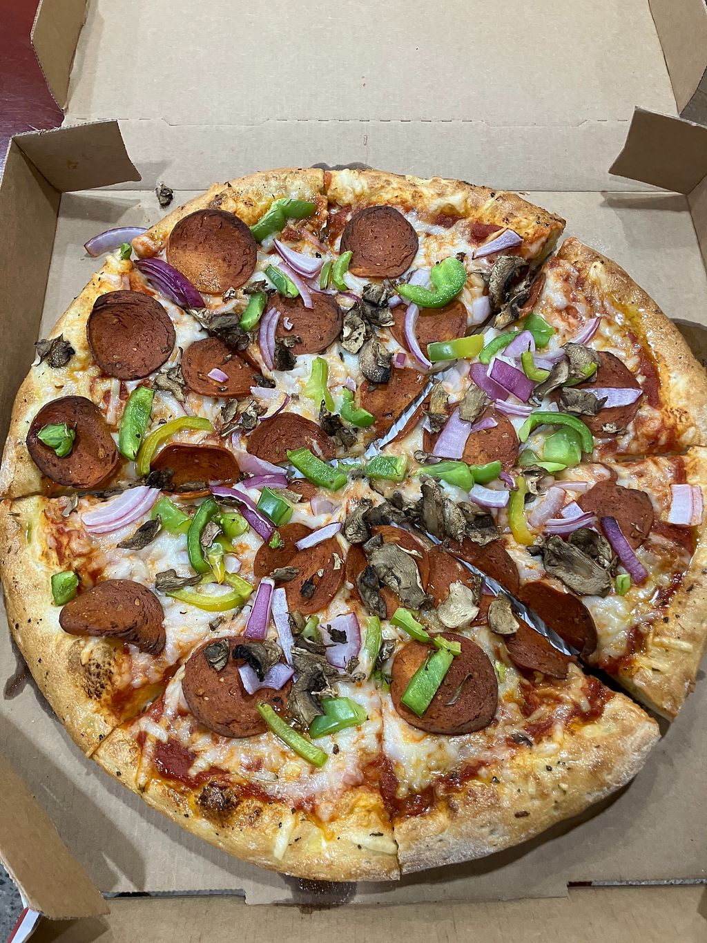 Ordered here a lot for some junk food vegan pizza, if they get it right it’s good but 3-4 times in a row have gotten bacon or dairy cheese on our pizza or some large cross contamination with pepperoni or something. Will spend 4-5$ more a pizza for accurate orders someplace else