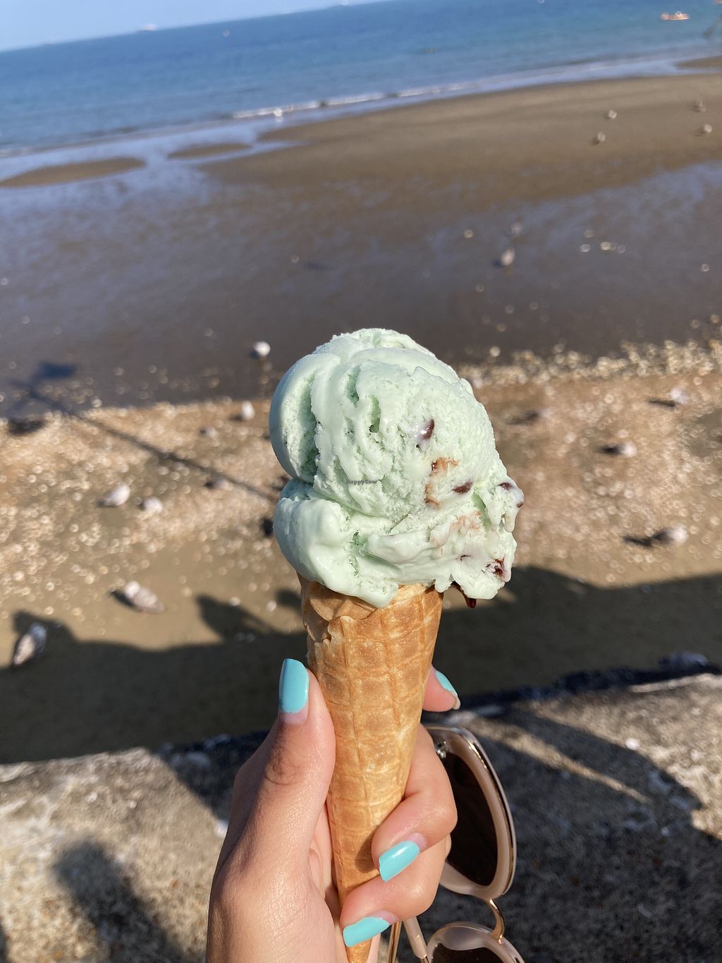Vegan ice cream on a beautiful beach - Edit