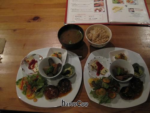 An organic vegan cafe near Kyoto University offering a menu of mostly Japanese cuisine with a few fusion dishes plus organic wine. Uses organic vegetables, grains, and fruits. Rice and salad are ordered separately from mains. Casual atmosphere. Confirmed closed, Feb 2018.
