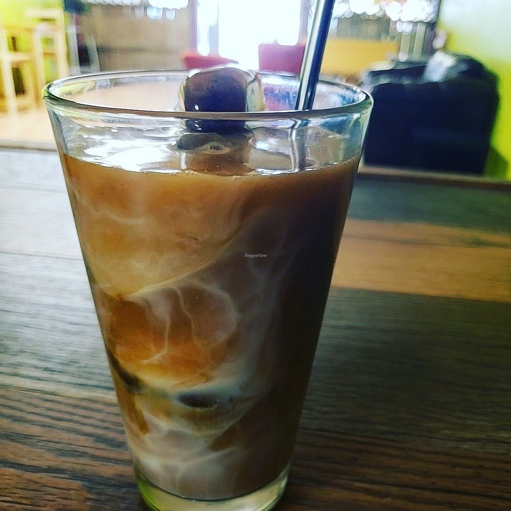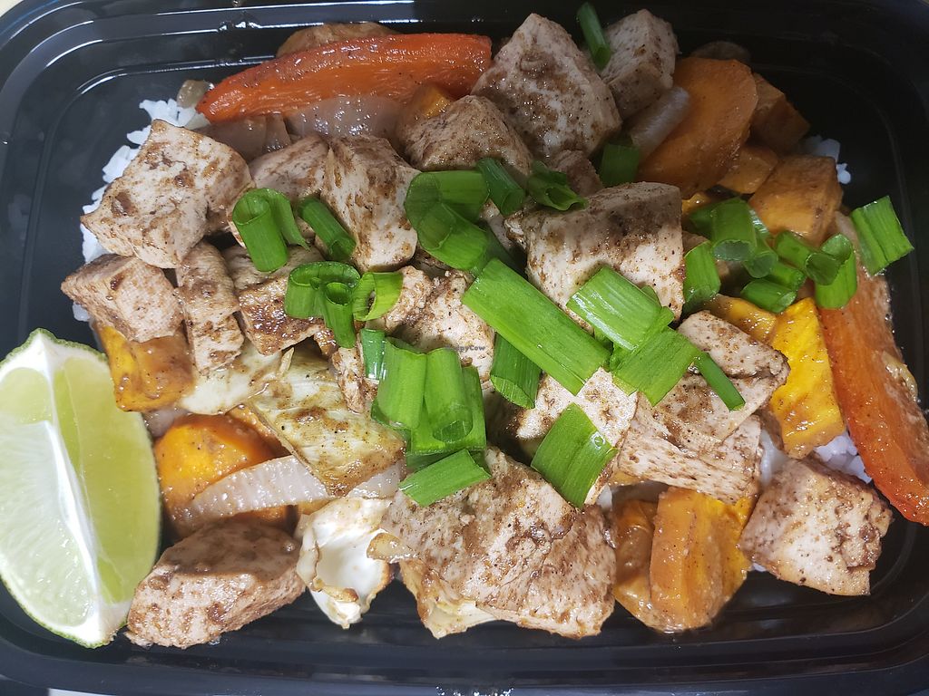 Serves meat, vegan options available. Fitness and health focused menu with wraps, salads, rice and quinoa bowls, hummus, avocado toast, smoothies, protein shakes, iced coffee, and ginger shots. Has tofu and meat-substitutes. Reported closed July 2022.