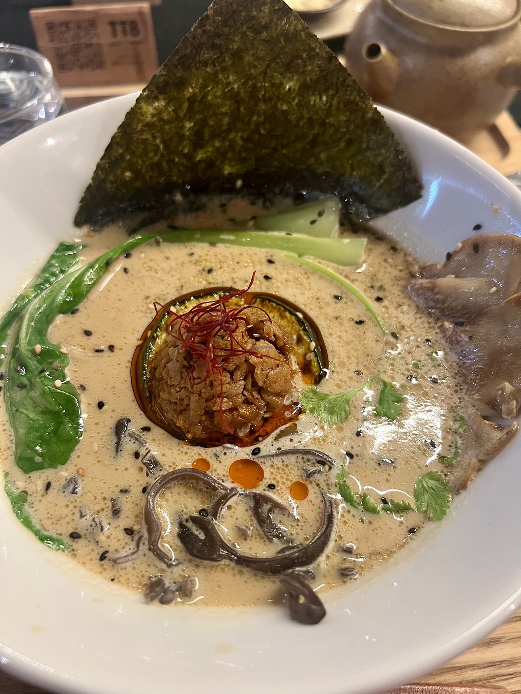 Had the Kyoto ramen, the broth was amazing got a depth I hadn't tasted before in other vegan ramens. Maybe an acid? Go here if you can spend $30 on a bowl