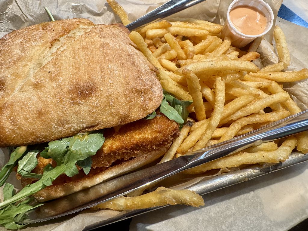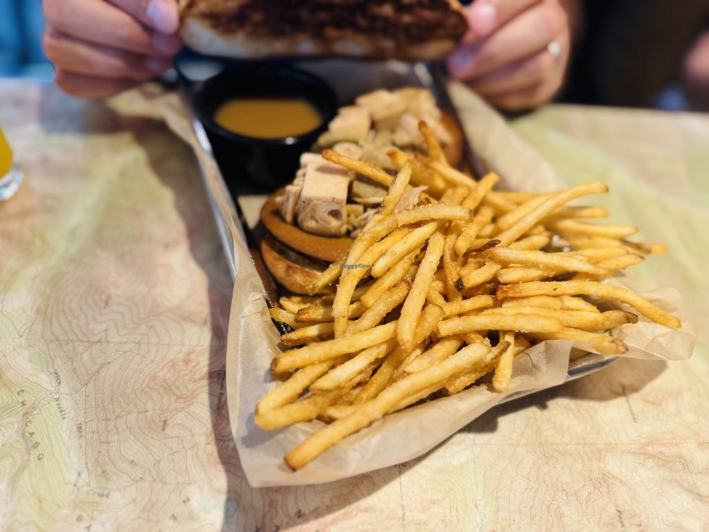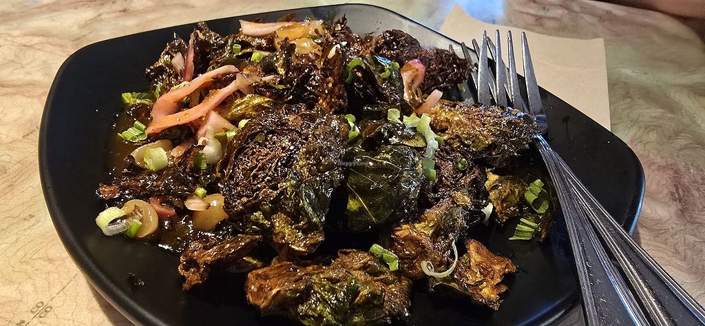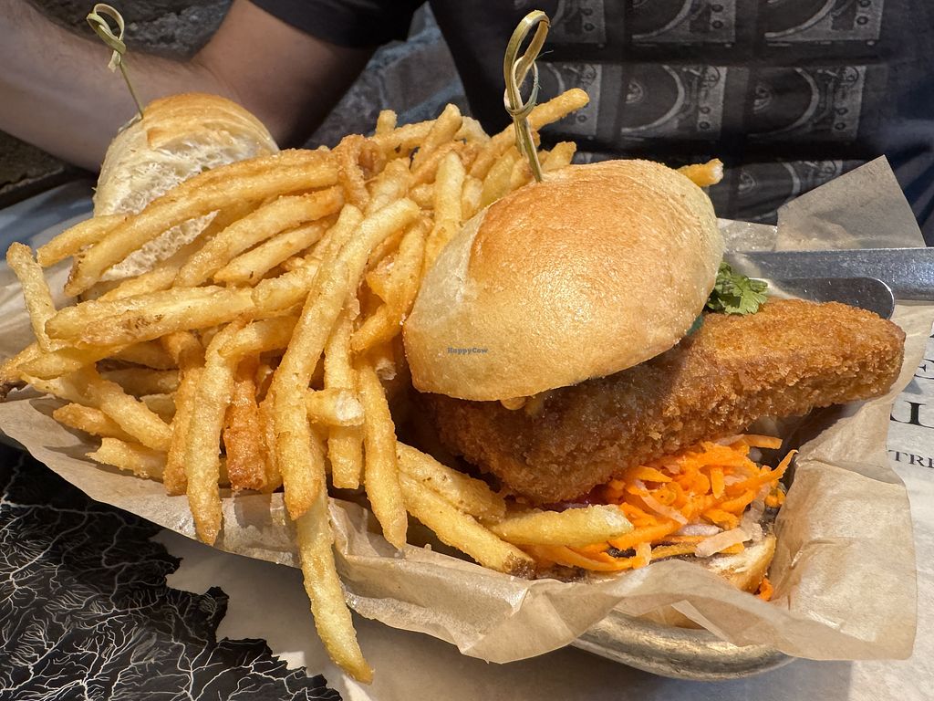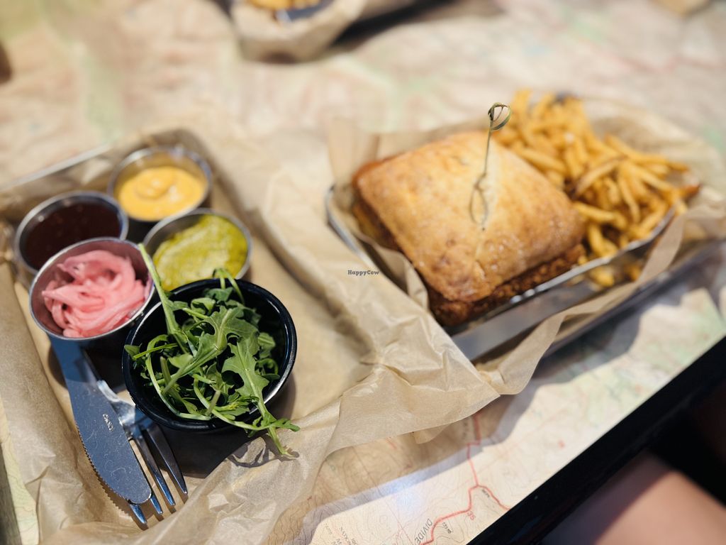 Panko breaded tofu steak loaded with katsu sauce and toppings