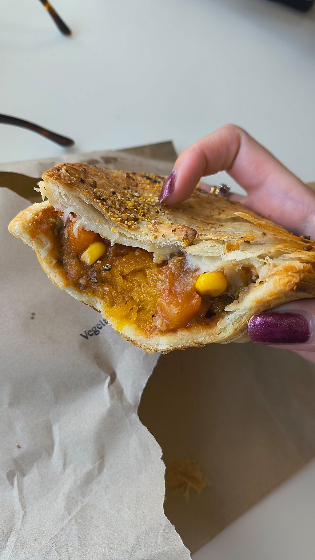 Adequate vegan options, both sweet and savoury. I got the veggie curry pie and a peanut butter slice.