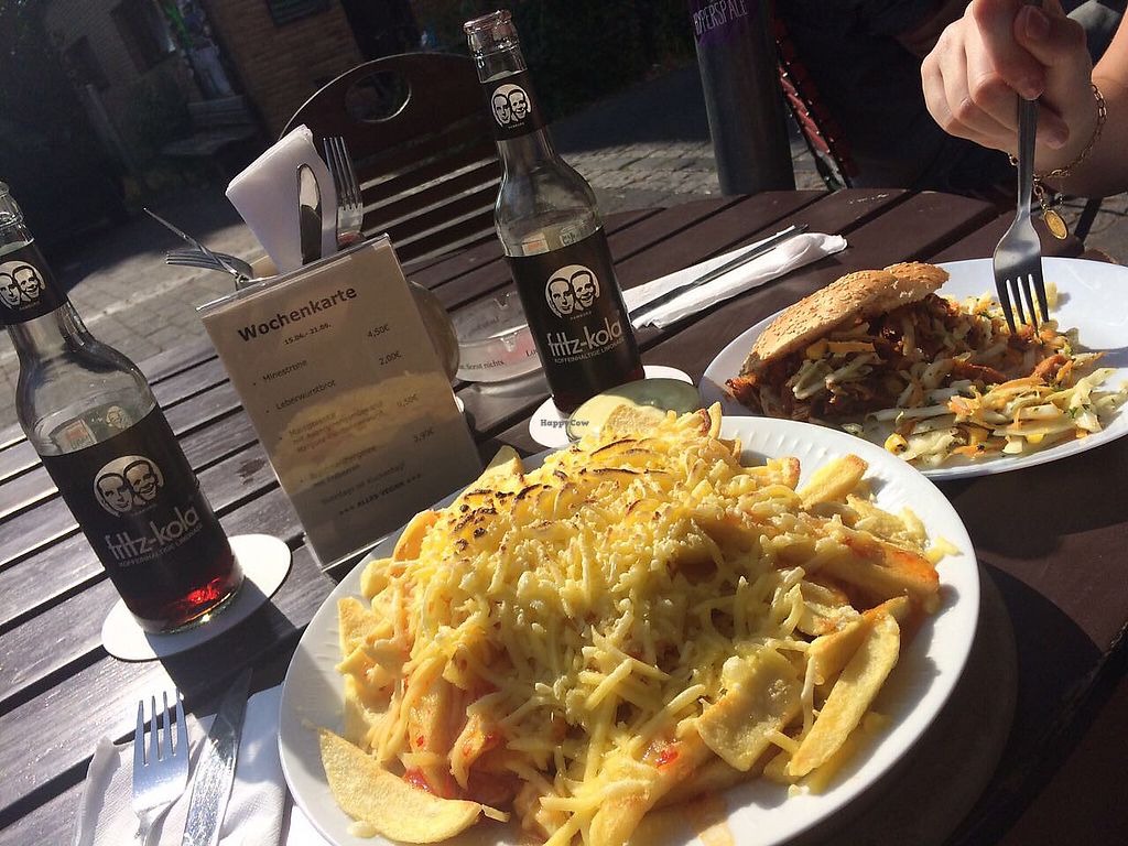 Ich mochte die Atmosphäre sehr, das Gyros war sehr lecker und die Chili Cheese Pommes auch. Die Currywurst war nicht schlecht, hat aber meinen Geschmack nicht getroffen (Berliner Currywurst Fan).
