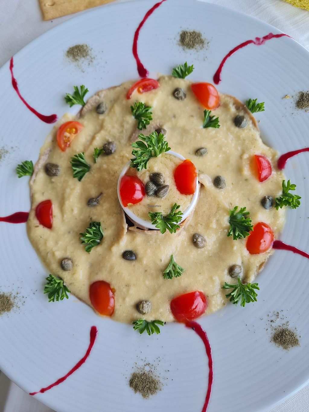 Panzerotto ripieno ai peperoni e vegan mozzarella con maionese al bas…