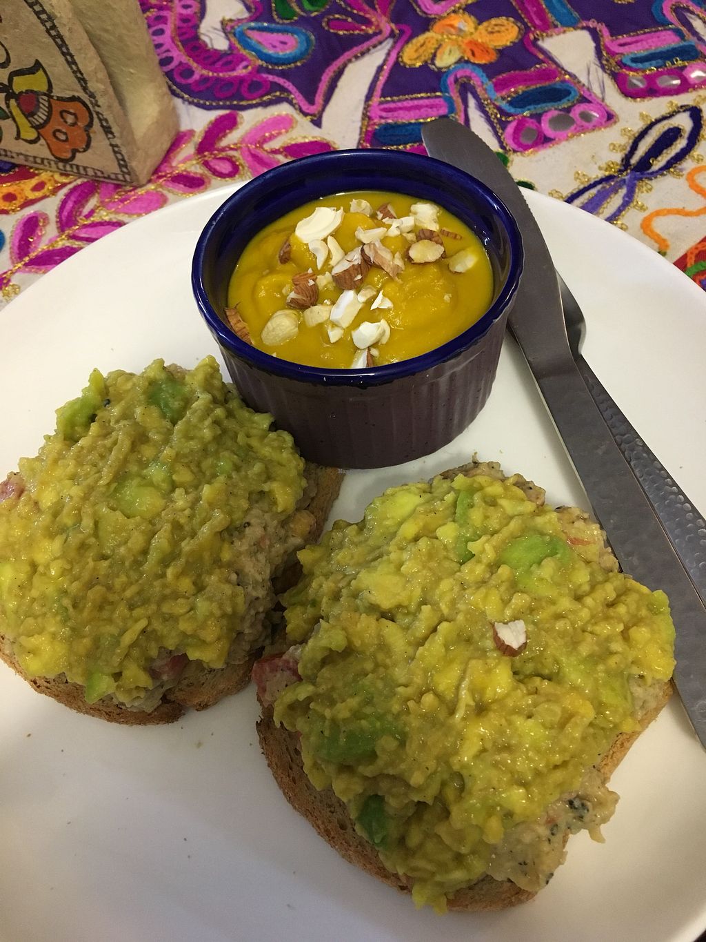 We've just launched a new menu this week and incorporated some Indian influence - Sweet Potato Pea Burger and Tofu Scramble both with Indian spices.