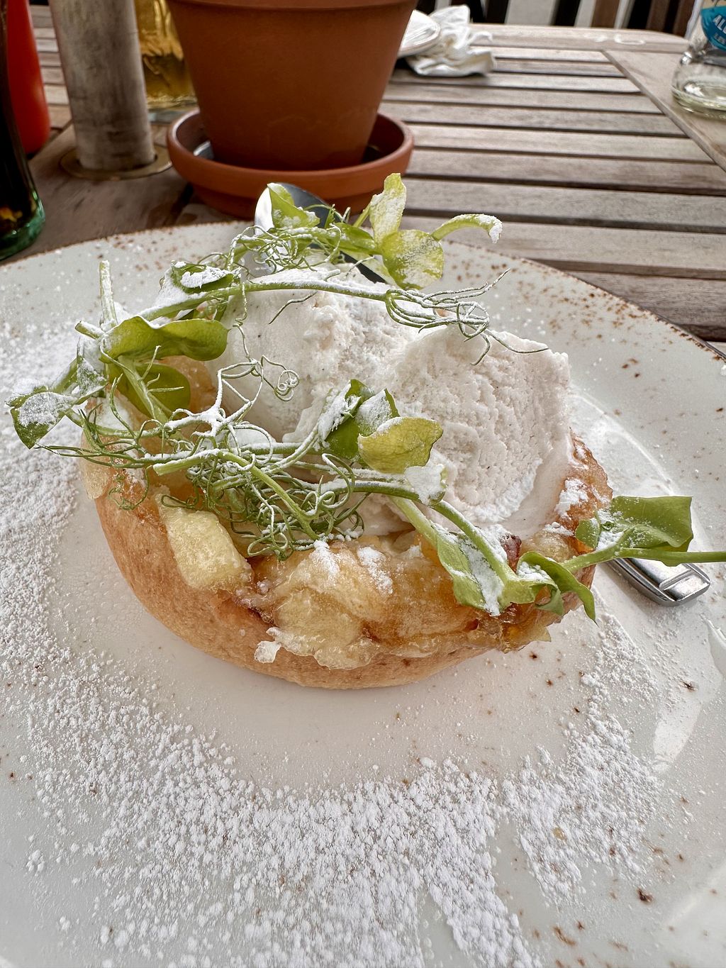 Came here on a Sunday lunchtime. For the main course there was the option of a roast or burger, which were vegetarian but could be made vegan. The burger was tasty and came with a good portion of chips. For dessert, I had the Bramley Apple Tart with coconut vanilla ice-cream, which was also tasty.