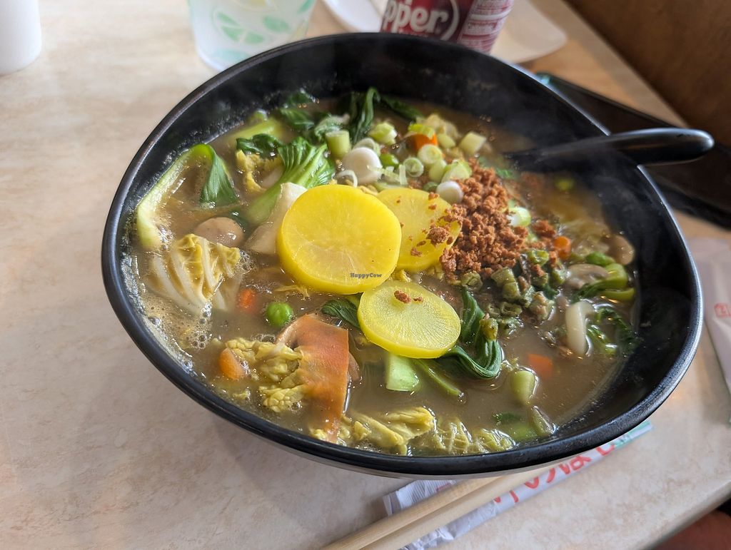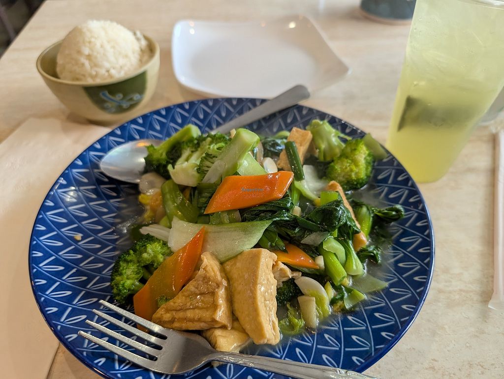 Wife looked this up on Happy Cow. When we got there, I didn’t think I’d like it but so glad we stayed! We did the buffet and really enjoyed many of the items. Blown away at the eggplant as I’m not typically a huge fan. Also loved the Thai Tea, highly recommend it! Great restaurant, all vegan, peanut free.