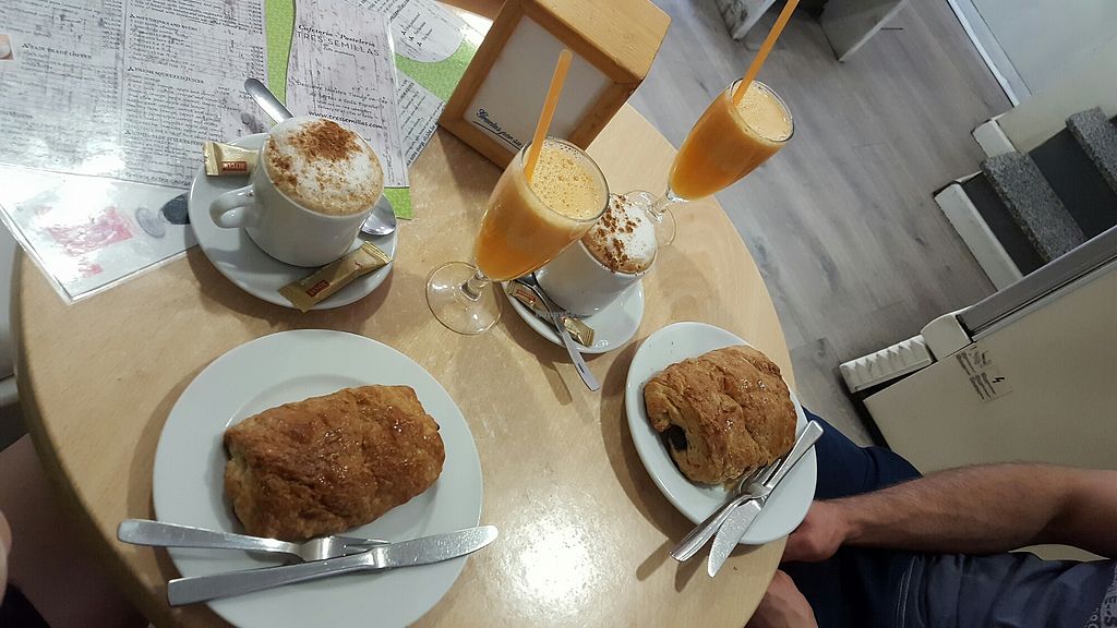 Breakfast with soya milk Cappuccino, fresh orange juice and pain au ch…