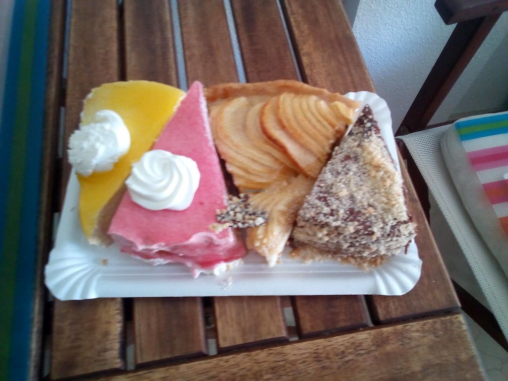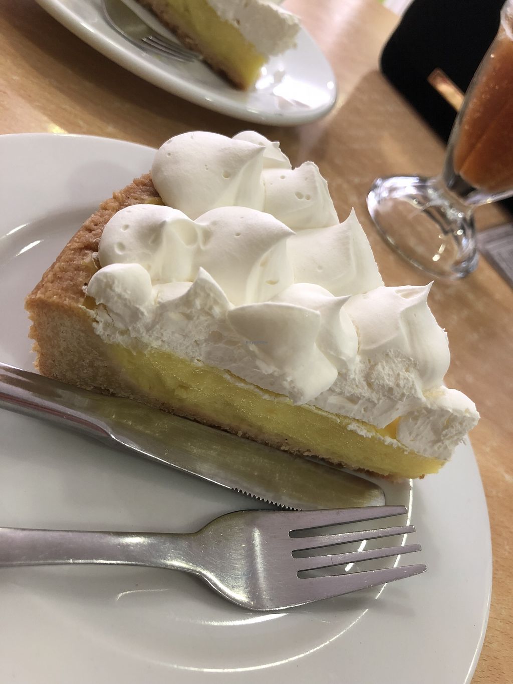 Fresh squeezed juice, lemon mousse cake and empanada.
