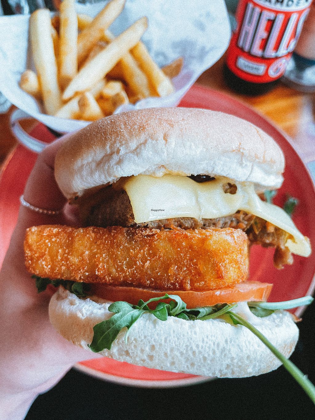 Vegan ultimate sandwich - sausage, hash browns, cheeze