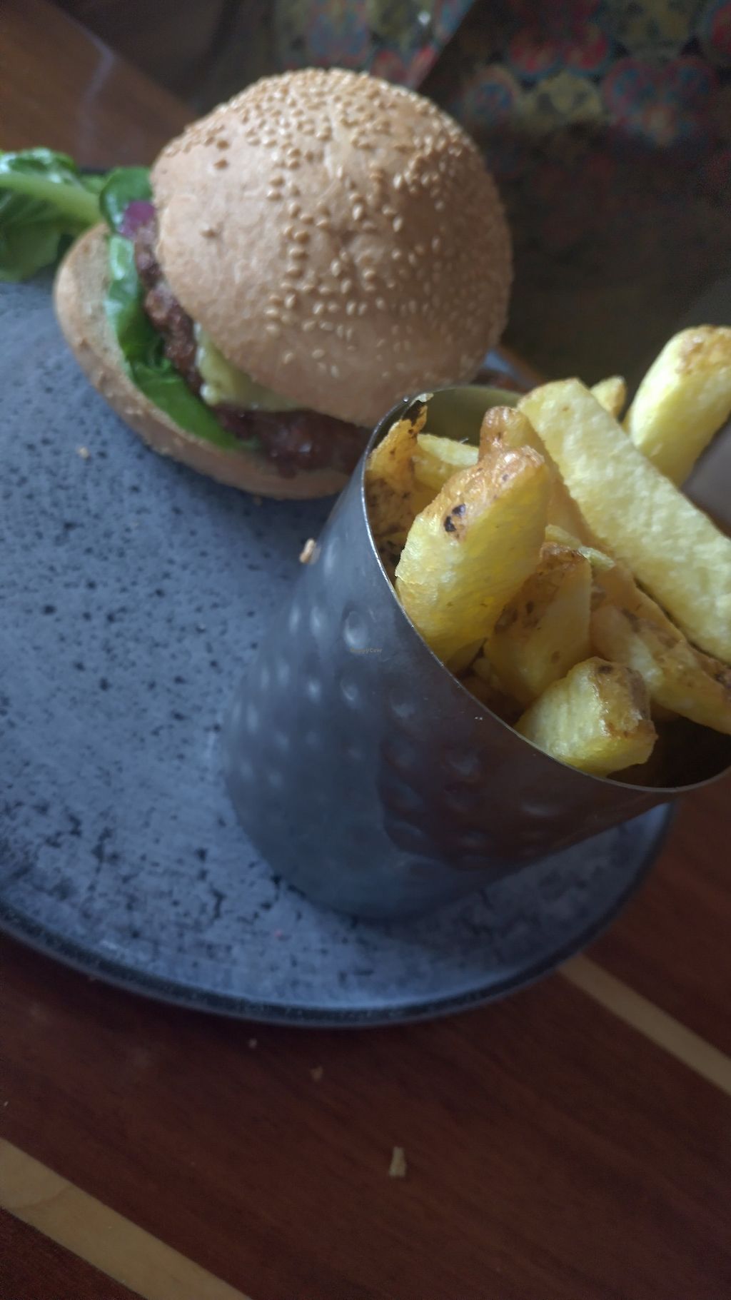 Very nice Beyond burger and chips.