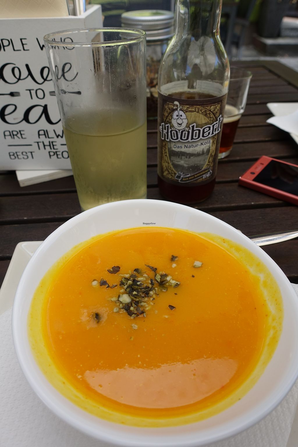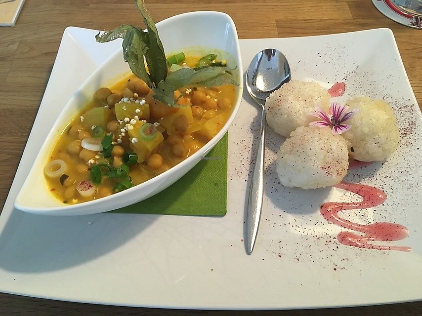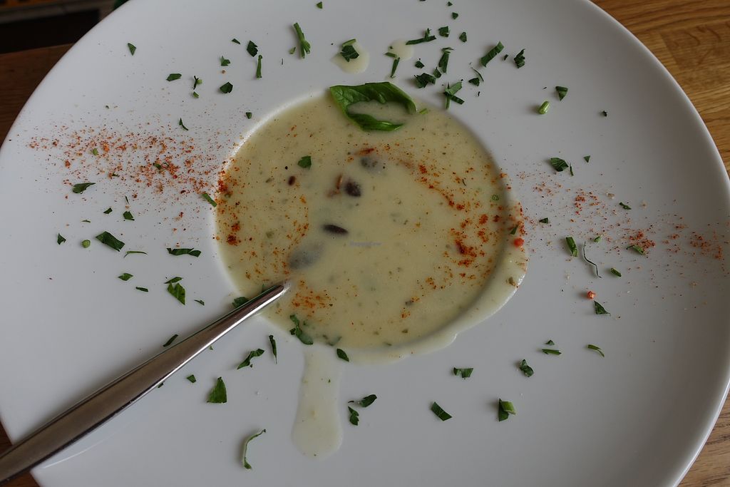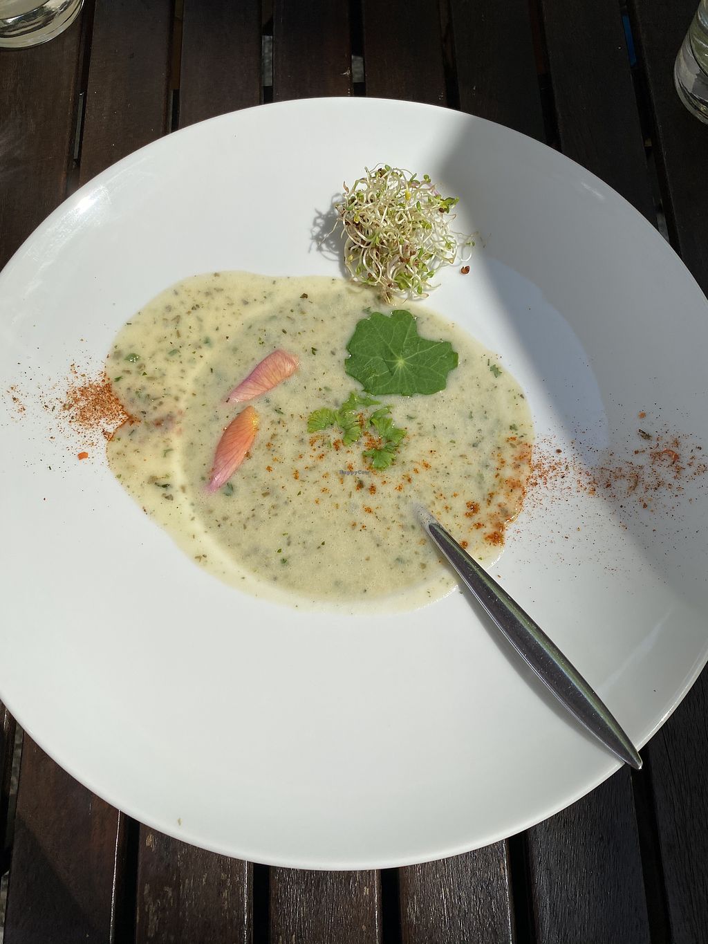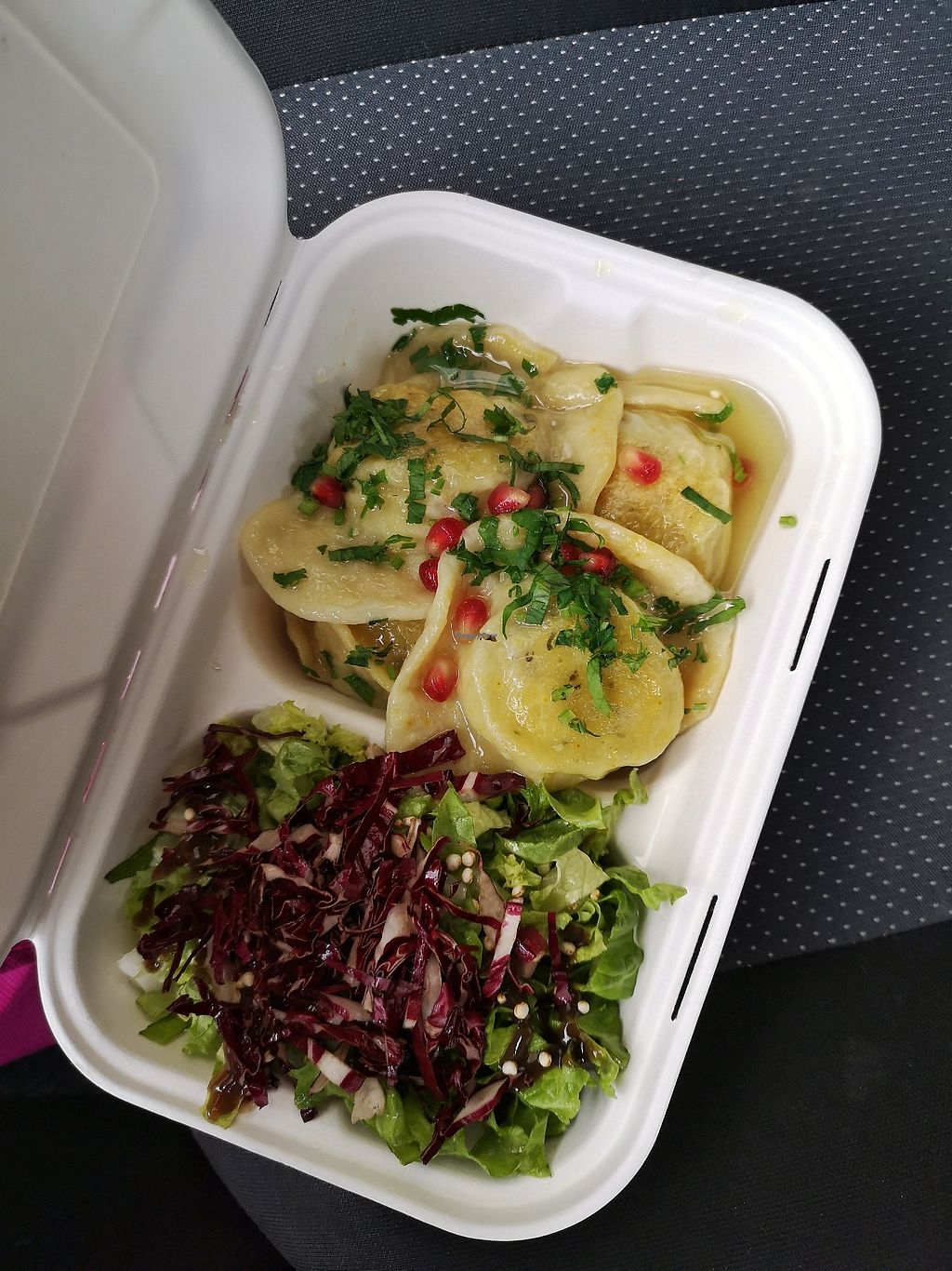 Daily menu, delicious and very cheap includind a soup! This is a ravio…