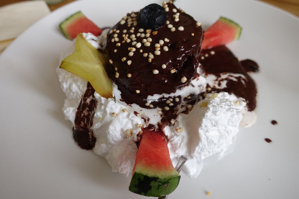 "Veganer" Dessert, a cake with all of these toppings freshly baked!