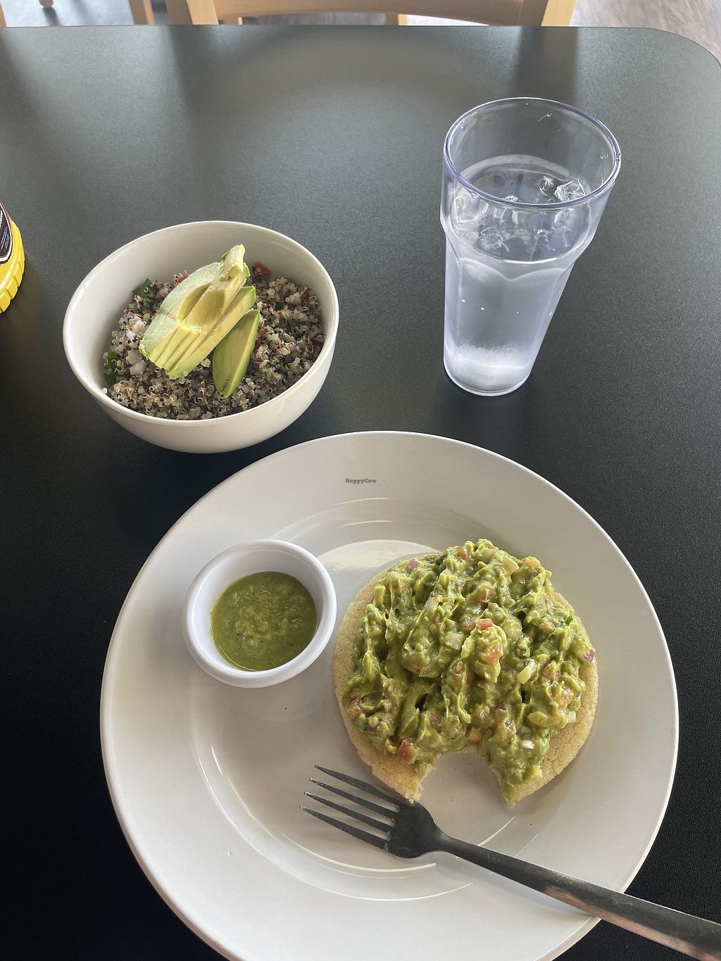Arepas with guacamole, quinoa salad