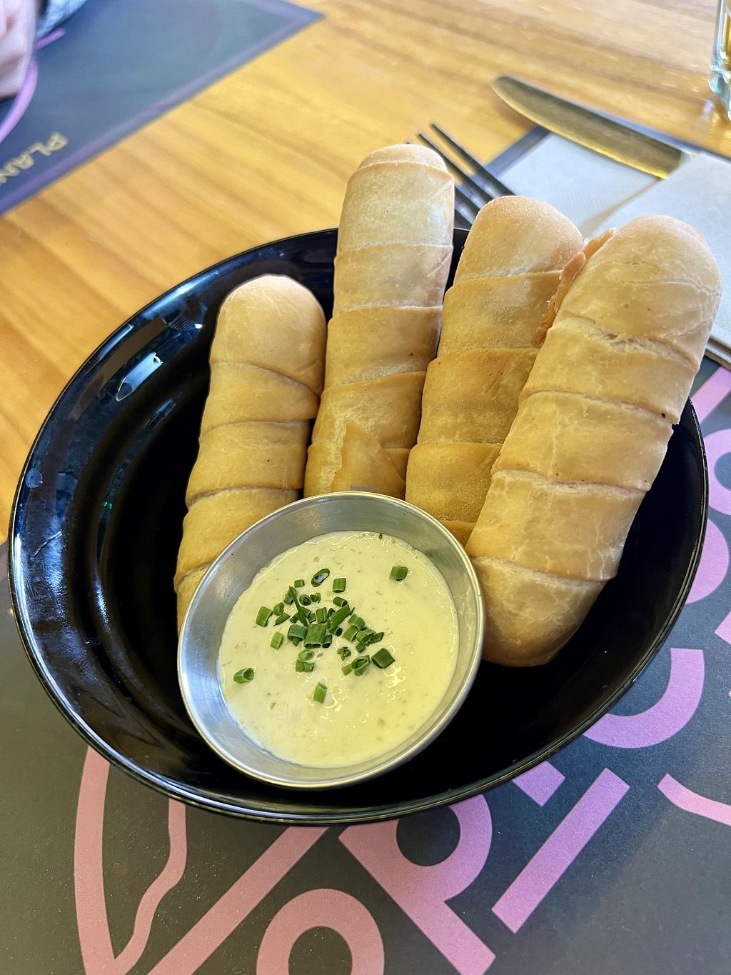Sticks de batata y gajos de patata a medio comer (porciones generosas,…