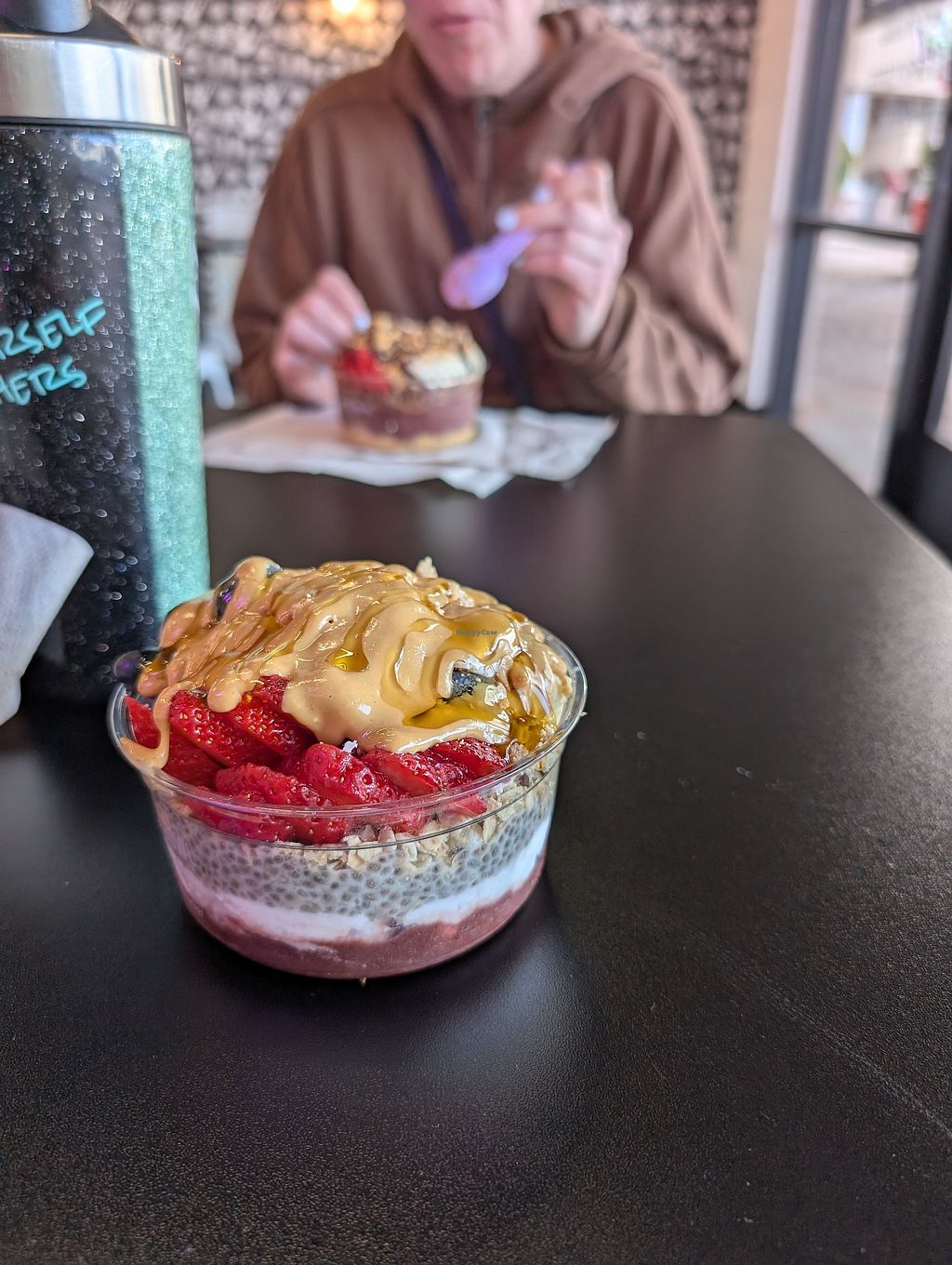 Smoothie bowl shop serving juices, protein shakes, acai bowls, sea moss and more. Has many vegan options. Open Mon-Sat 8:00am-9:00pm, Sun 10:00am-4:00pm.
