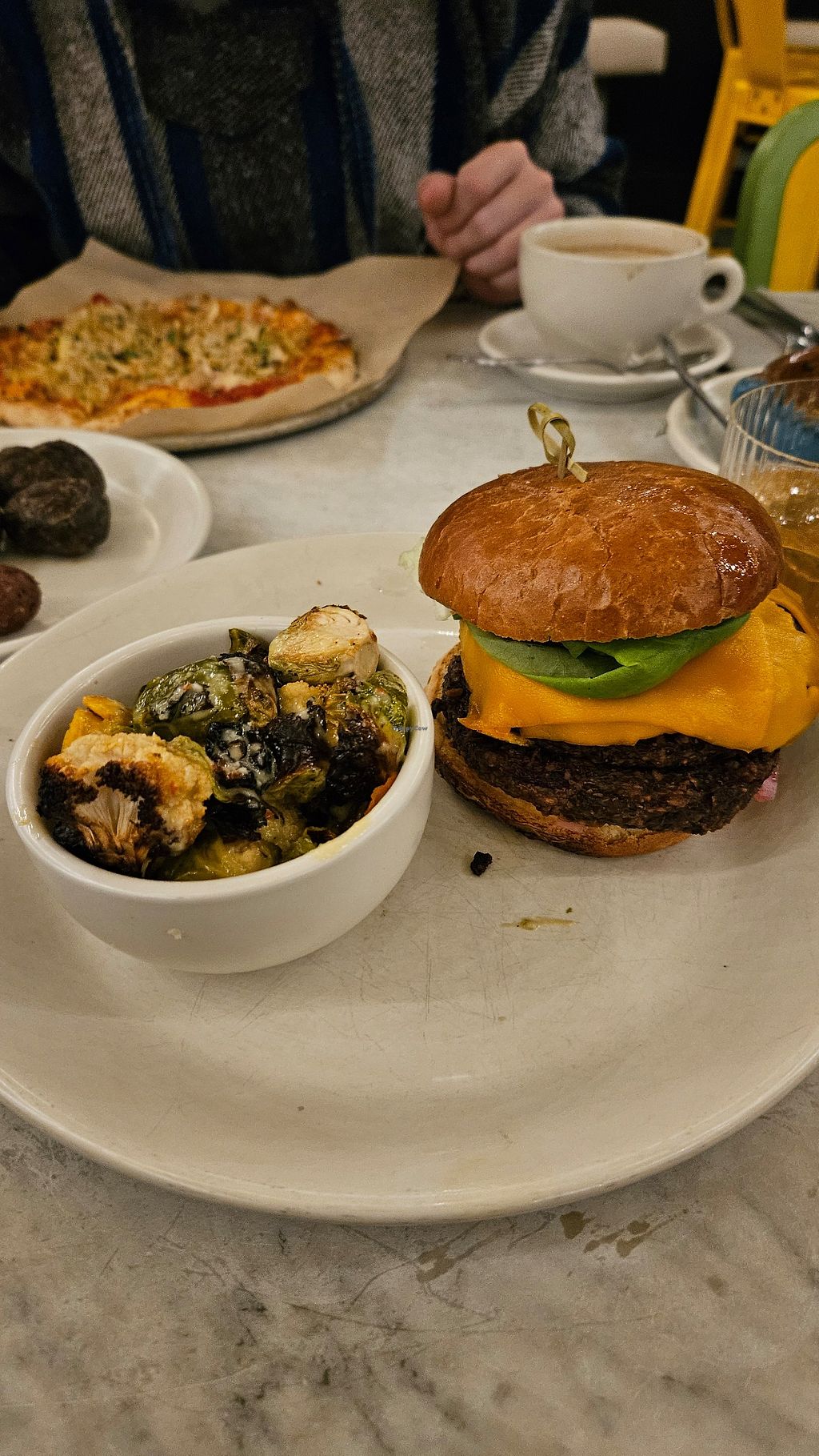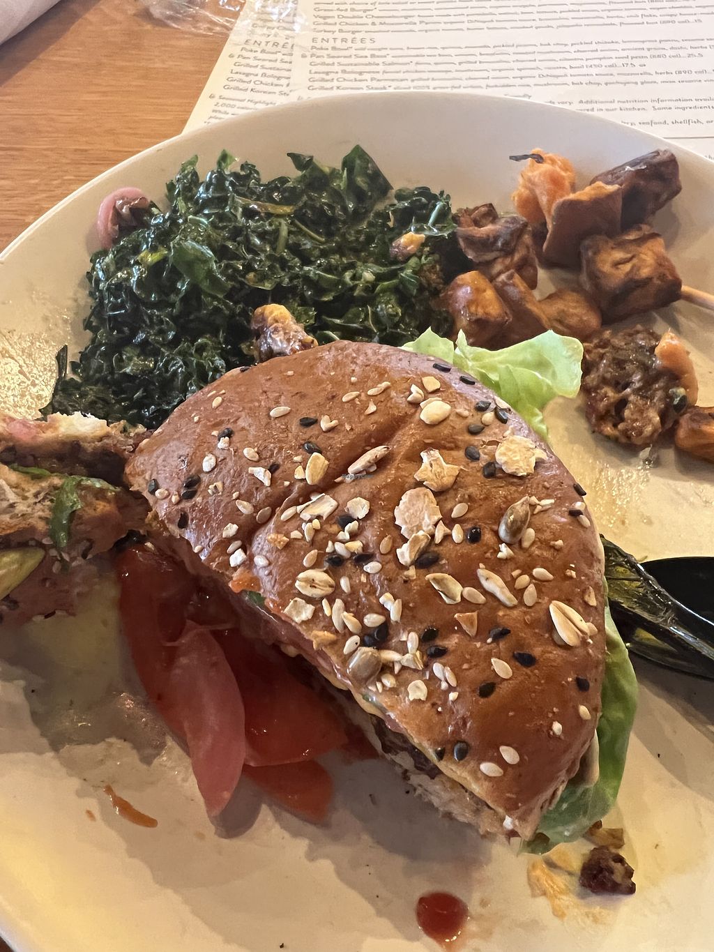 Great big beautiful restaurant, fast service even though it’s full. I had a vegan sandwich/burger with sweet potato and it was veeeery yum yum