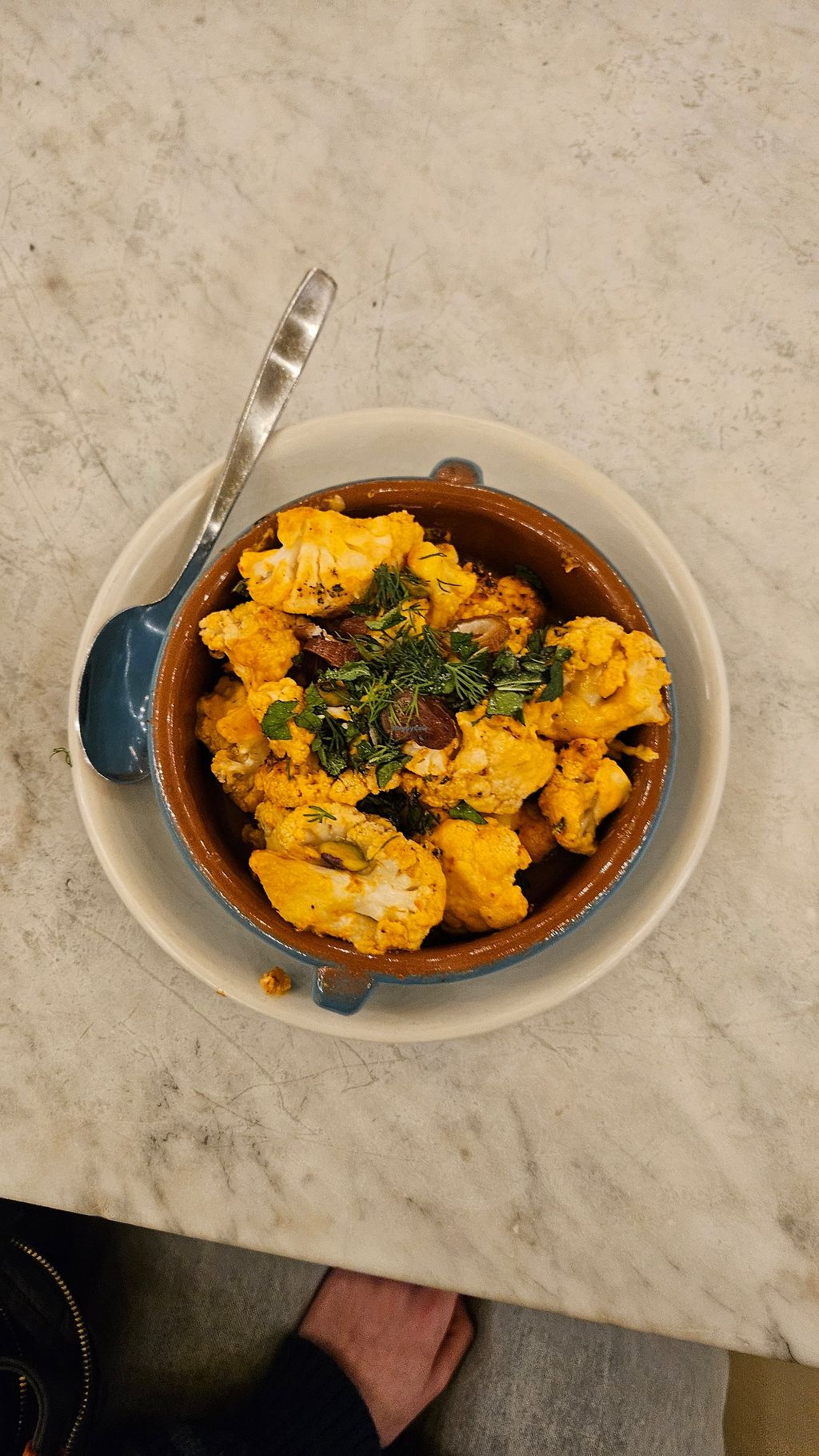 I did not realize this place was a chain until I walked in and was reminded of one of my favorite places with vegan options from Nola. The corn soup is so good! The charred cauliflower is also incredible with the sliced dates.