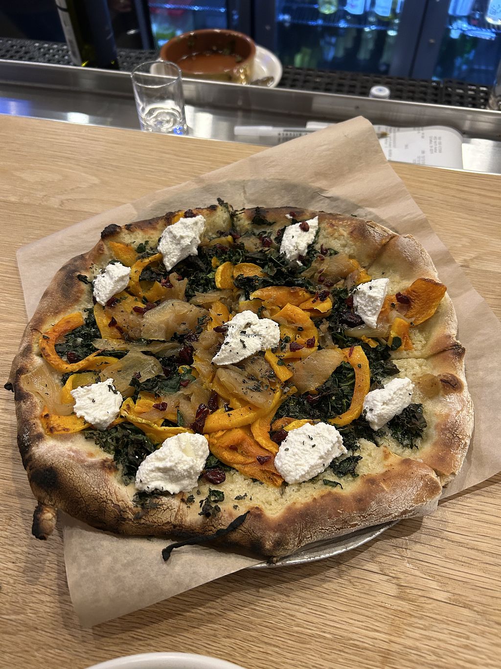 Almond milk ricotta, butter nut squash pizza.
