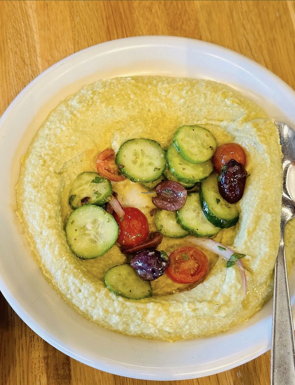 Vegans rejoice! Fresh and seasonal fruits and vegetables. The hummus is full of flavor and one of the best I’ve ever had. (-feta). The mushroom pizza with the almond ricotta (nondairy) was very good. I’ll definitely visit here again to try different vegan-friendly items on the menu.
