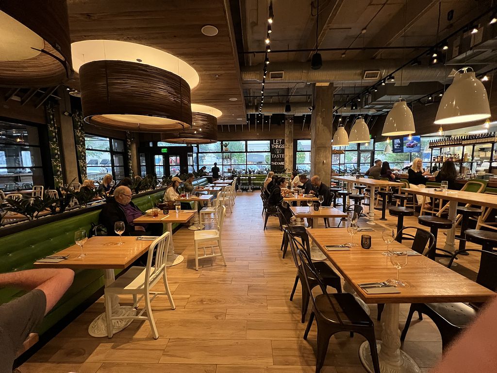 Serves meat, vegan options available. Restaurant group offering New American cuisine with a healthier focus. The menu changes seasonally and will include labeled vegan dishes & options such as vegetable-based starters, savory bowl with tofu option, cheese-less pizza, and a couple of salads. Has fresh juices. Spacious and modern. Open Mon-Thu 11:00am-9:00pm, Fri 11:00am-10:00pm, Sat 10:00am-10:00pm, Sun 10:00am-9:00pm.