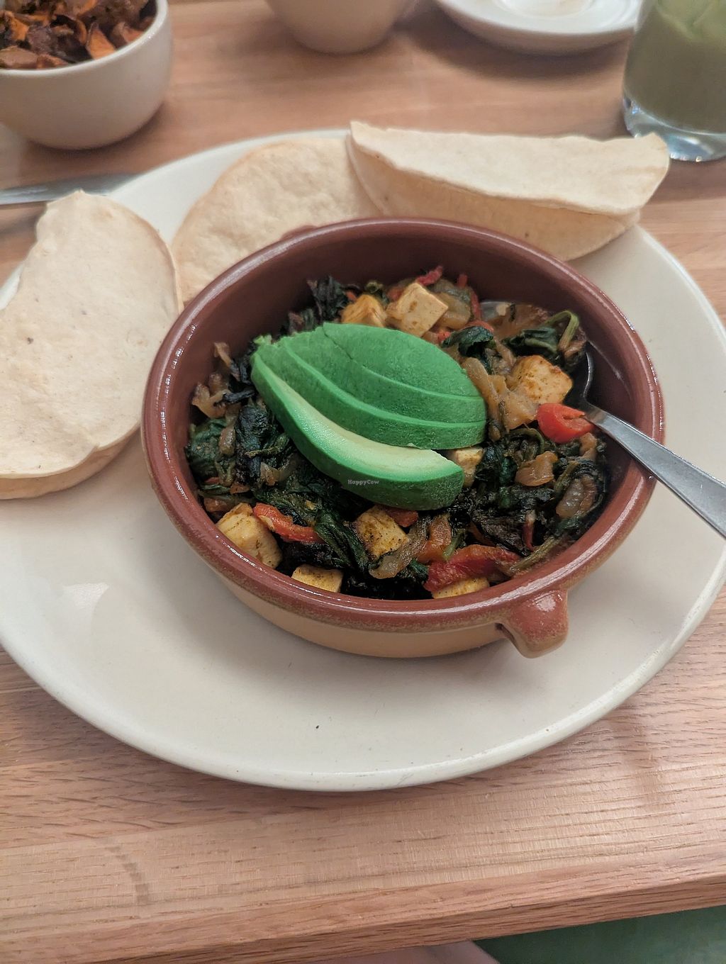 Southwest tofu scramble wasn't a scramble, just tofu chunks. And came with some stage cornmeal hard taco shells