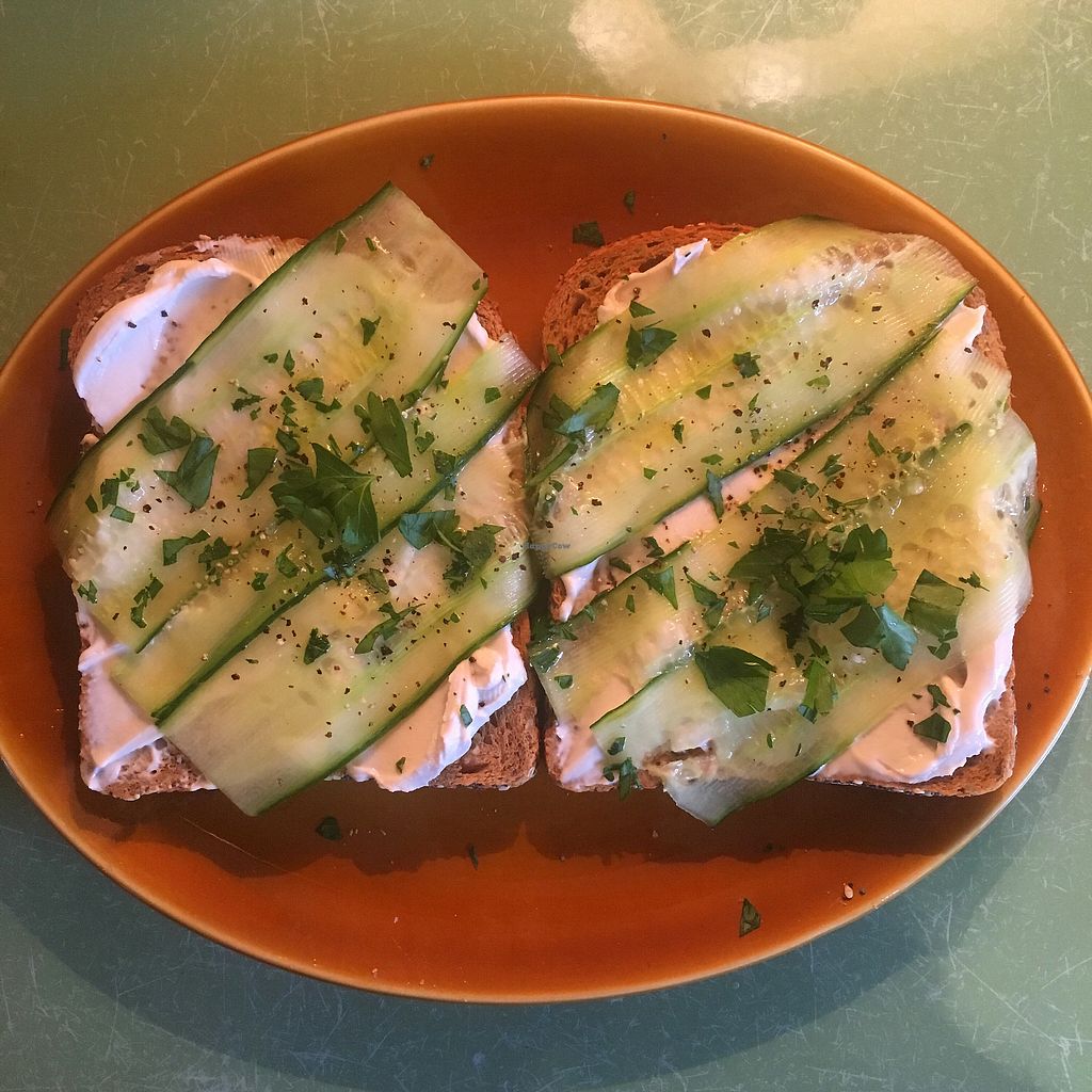 Dairy free cream cheese & cucumber on toast
