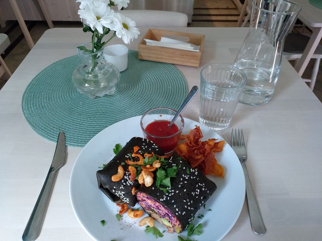 Pros: Everything is vegan and tasty, Cosy, Center of the city