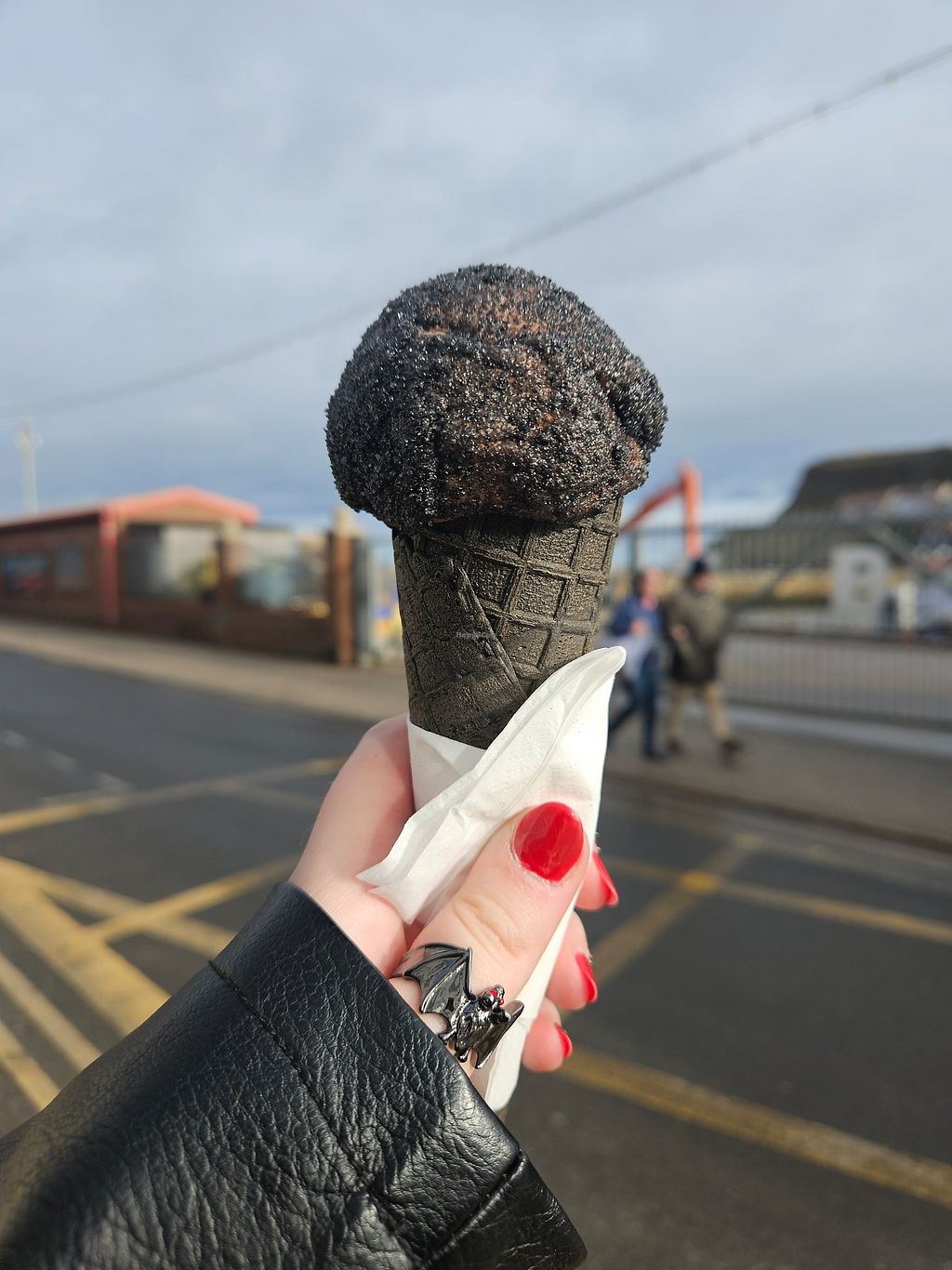 Got to join in with one of their many vegan ice creams, checked that the black cones are vegan and they are! Added "coal dust" to the ice cream and vióla!