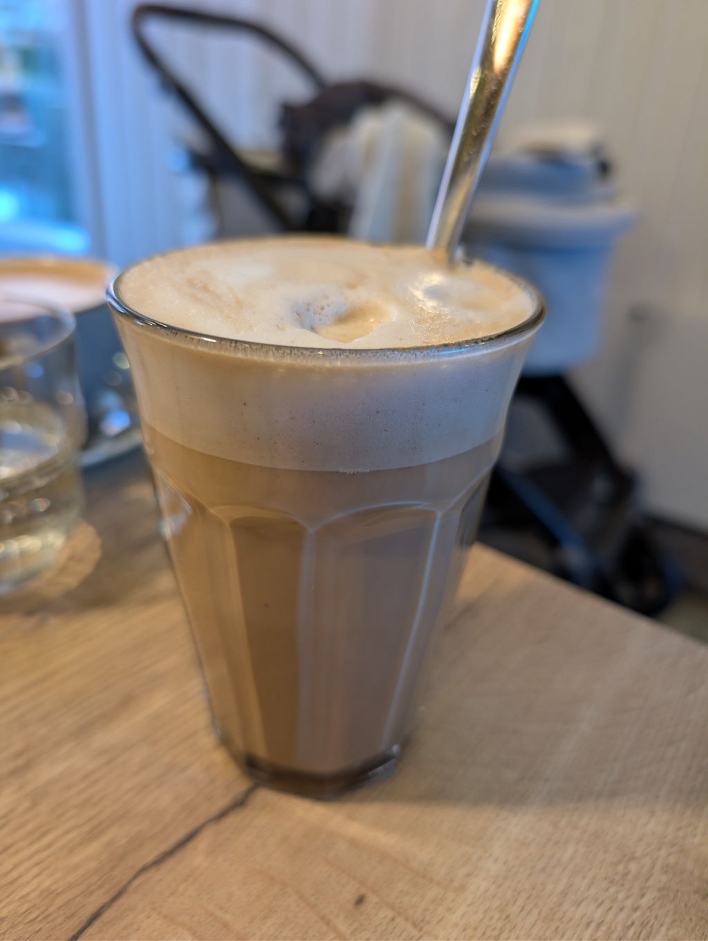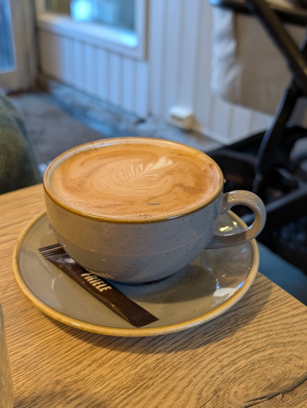 Mostly all cakes are at least vegetarian and labeled with the ingredients. Some options are vegan but a little bit hidden. All coffees can be prepared with Oatmilk.